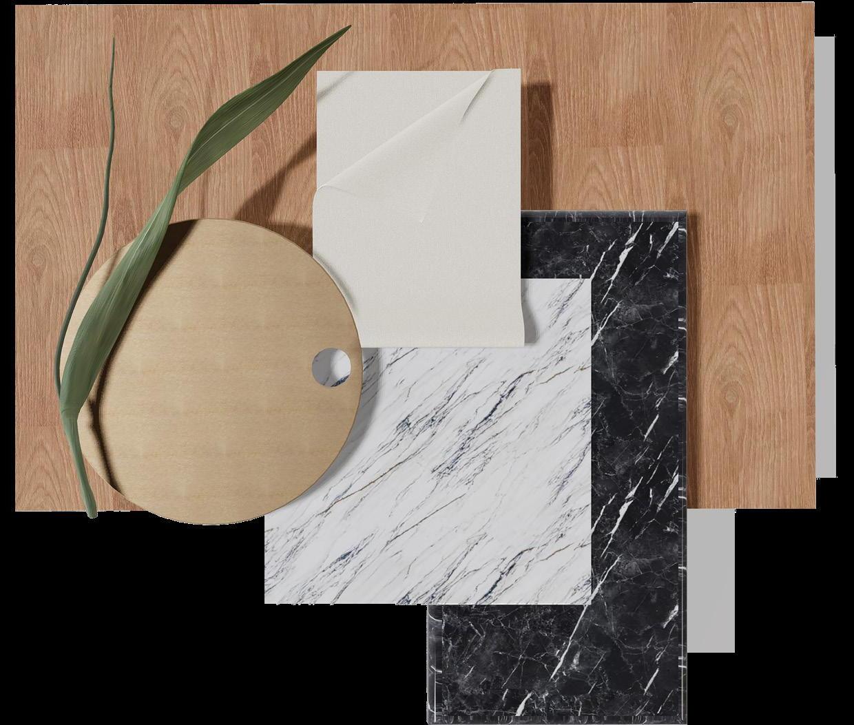 The combination of white and black marble cladding can create a striking visual contrast, adding a sense of luxury and elegance to the space. Wooden flooring would complement the marble nicely, adding warmth and texture to the room while providing a cozy atmosphere.
