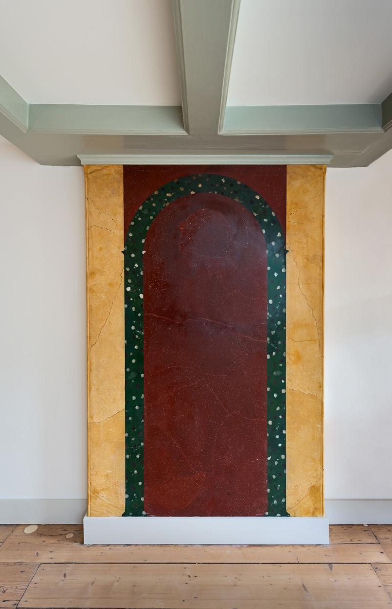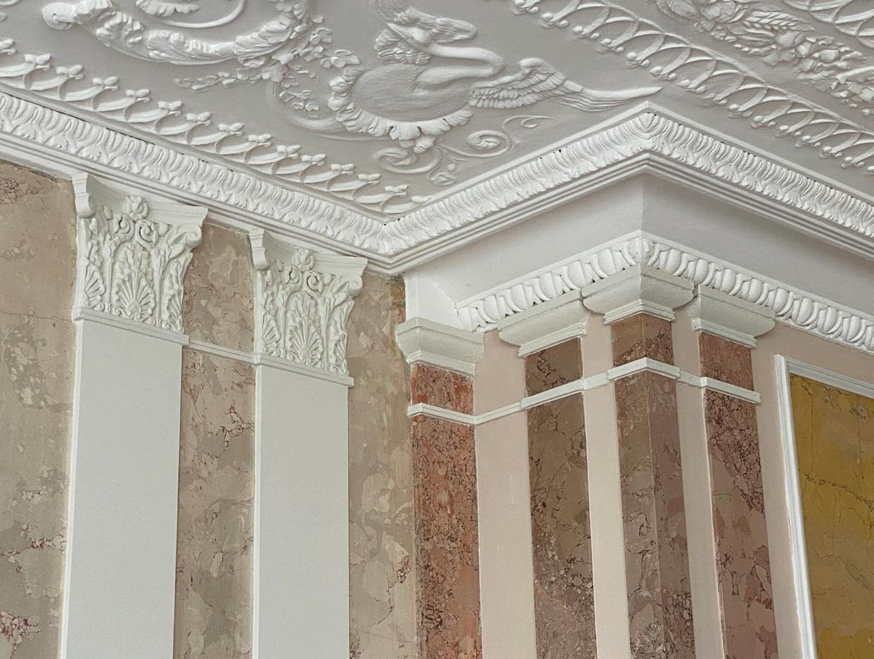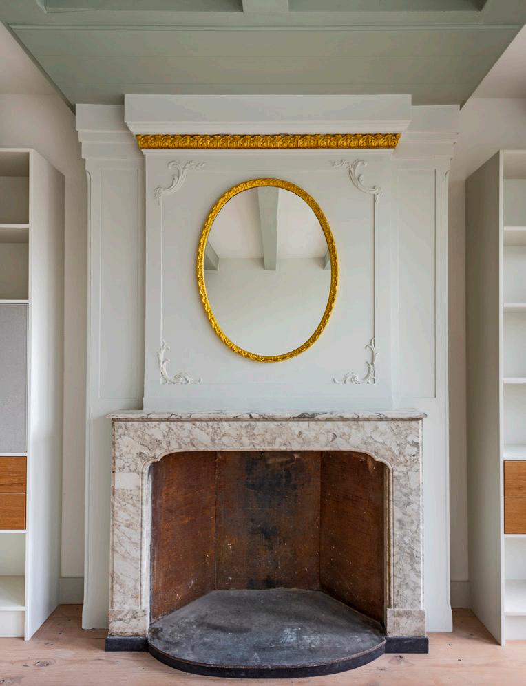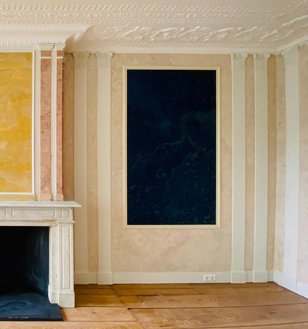 In the extension a mantelpiece was found which was finished with stucco marble (scagliola). Months later, during the demolition work, further research led to yet another discovery: since 1956, partition walls had been hiding an entire scagliola room. This mid-19th century period room features various stucco techniques. The fact that such a room is located in a private house makes it very special.
