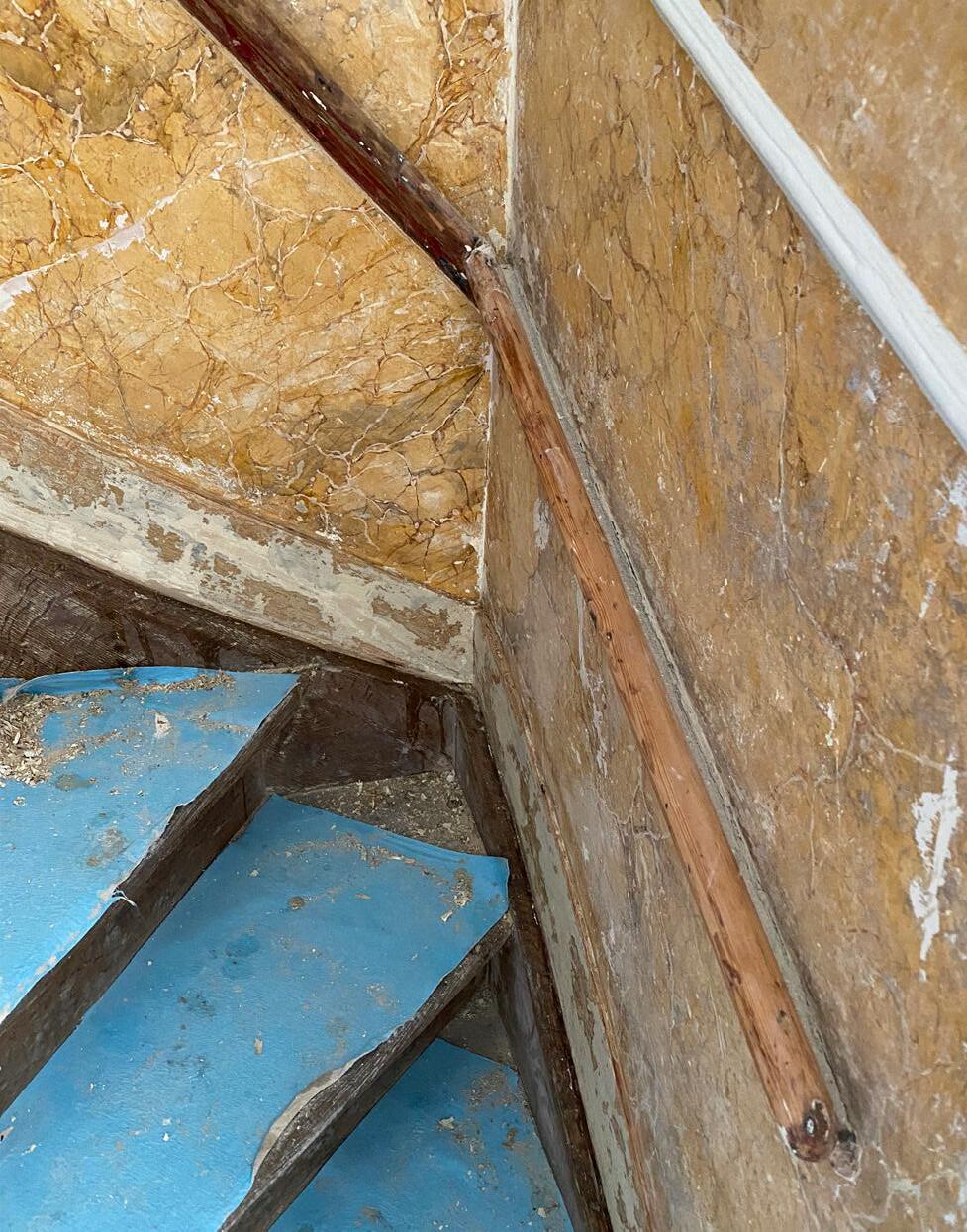 09/2019 scagliola in trappenhuis ontdekt (bel-etage) discovery of scagliola in stairwell (ground floor)