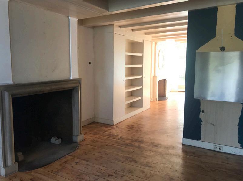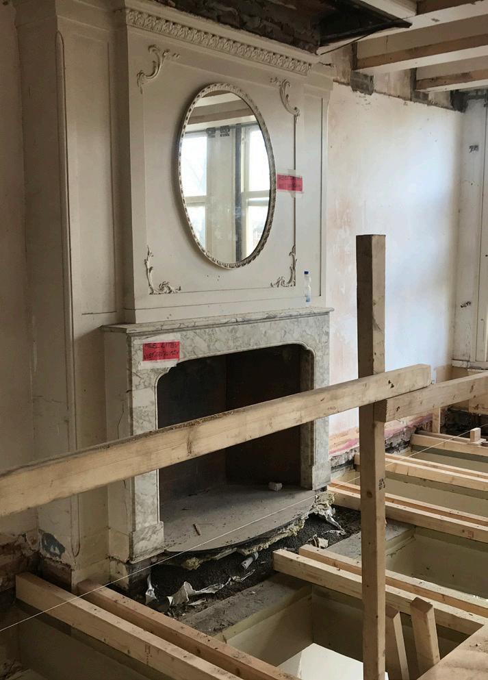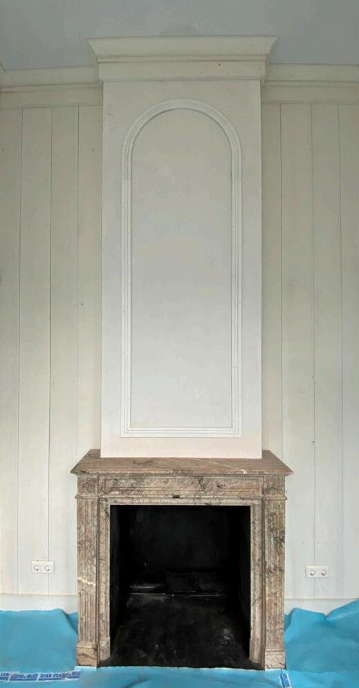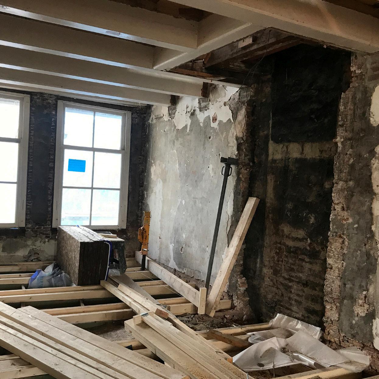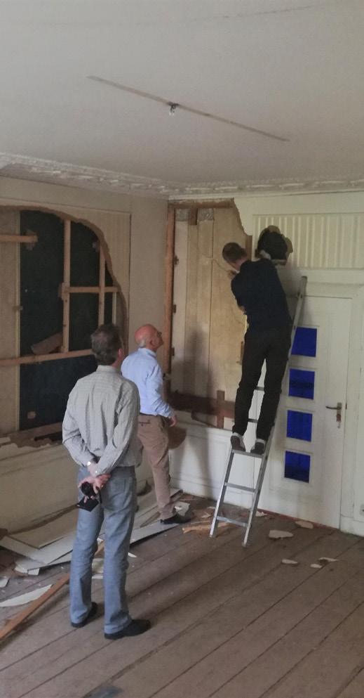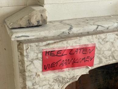 08/2017 start werkzaamheden bij Vroom start activities at architectural firm Vroom scagliola schoorsteenmantel aangetroffen scagliola mantelpiece found