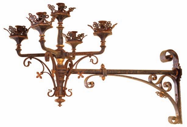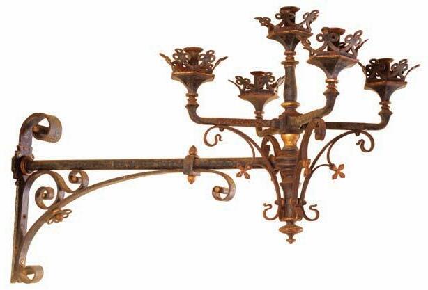 A French neo-Gothic wrought iron and parcel gilt wall light