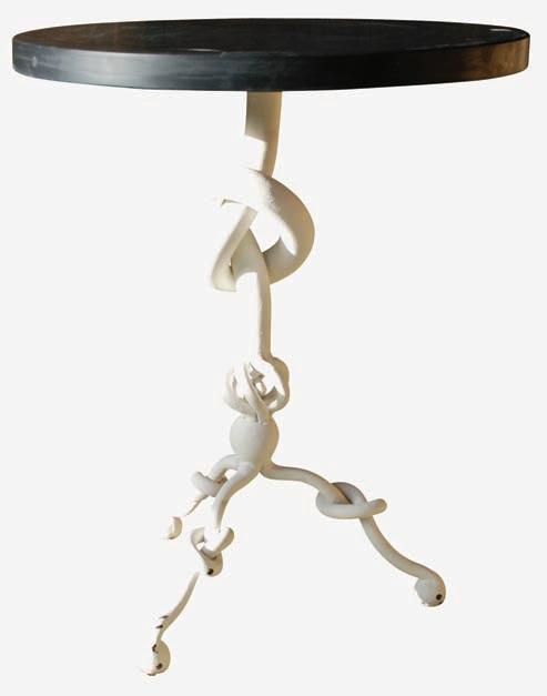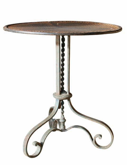 A mid 20th century circular wrought iron occasional table with later slate top.