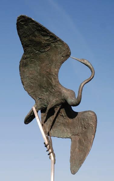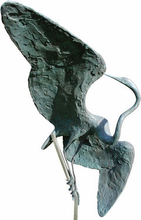 Cast in bronze with an aluminium stem, monogrammed and dated 1966, numbered 2/6. This sculpture relates to a series of bird sculptures by David Wynne exhibited at Arthur Tooth & Sons, Bruton Street, London W1, in March 1966 Preening Bird is listed and illustrated in the original catalogue and interestingly priced at £20. Height 2 ´ 10½˝ [88 cm] Square at base 12 ˝ [30 cm]