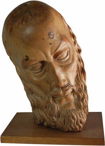 A carved wooden head of the apostle, Peter. A local artist, McGibbon was best known for her portrait bust of her good friend Stanley Spencer, now in the Cookham Museum.