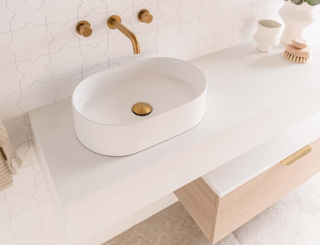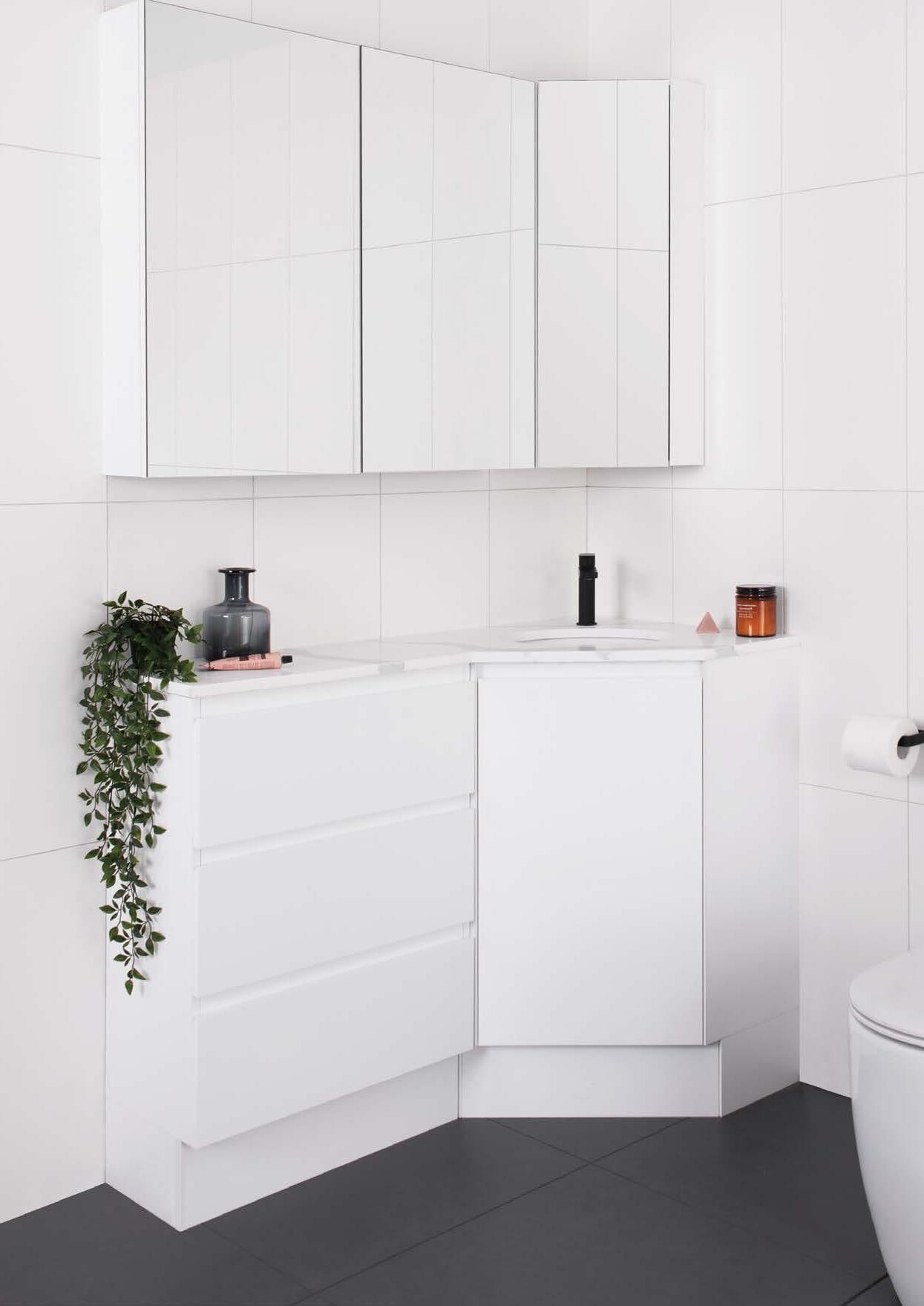 Personalise your vanity. Choose from a wide variety of cabinet and benchtop colours, giving you endless combinations to find the style that’s perfect for you.