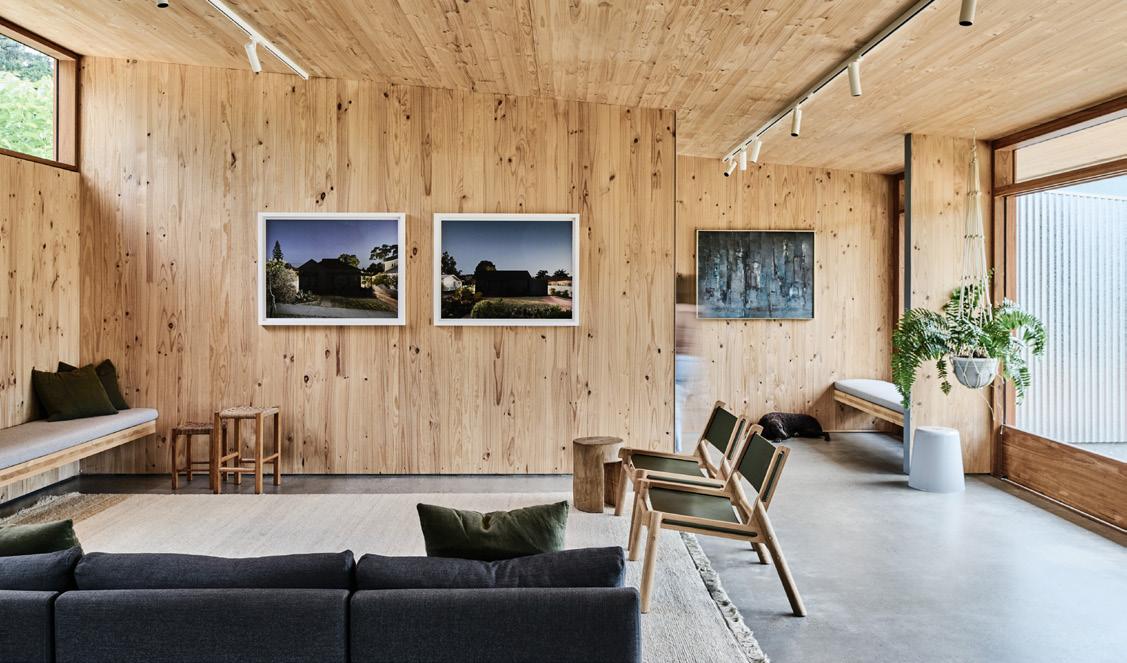 Botterill’s family home hosts a conceptual narrative that is architecturally intelligent whilst considering a deeply personal brief –both are compelling. A response to COVIDera supply chain interruptions resulted in a unique use of Cross Laminated Timber (CLT) construction – innovative in a residential context with the result creating a warm and deeply inviting frame with a natural timber interior. Botterill refines this system and successfully layers family life into its rigid dimensions, with intimate and generous spaces responding to needs for quiet and social alcoves that edge open spaces.