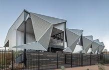 The muted palette of COLORBOND® colours provides a clear visual aesthetic that reinforces the strong visual links to the surrounding school buildings. The history of the site has been captured in the geometric shapes used in the roof line and wall treatments to reflect the saw tooth roofs of the abattoir buildings that existed previously on the site.