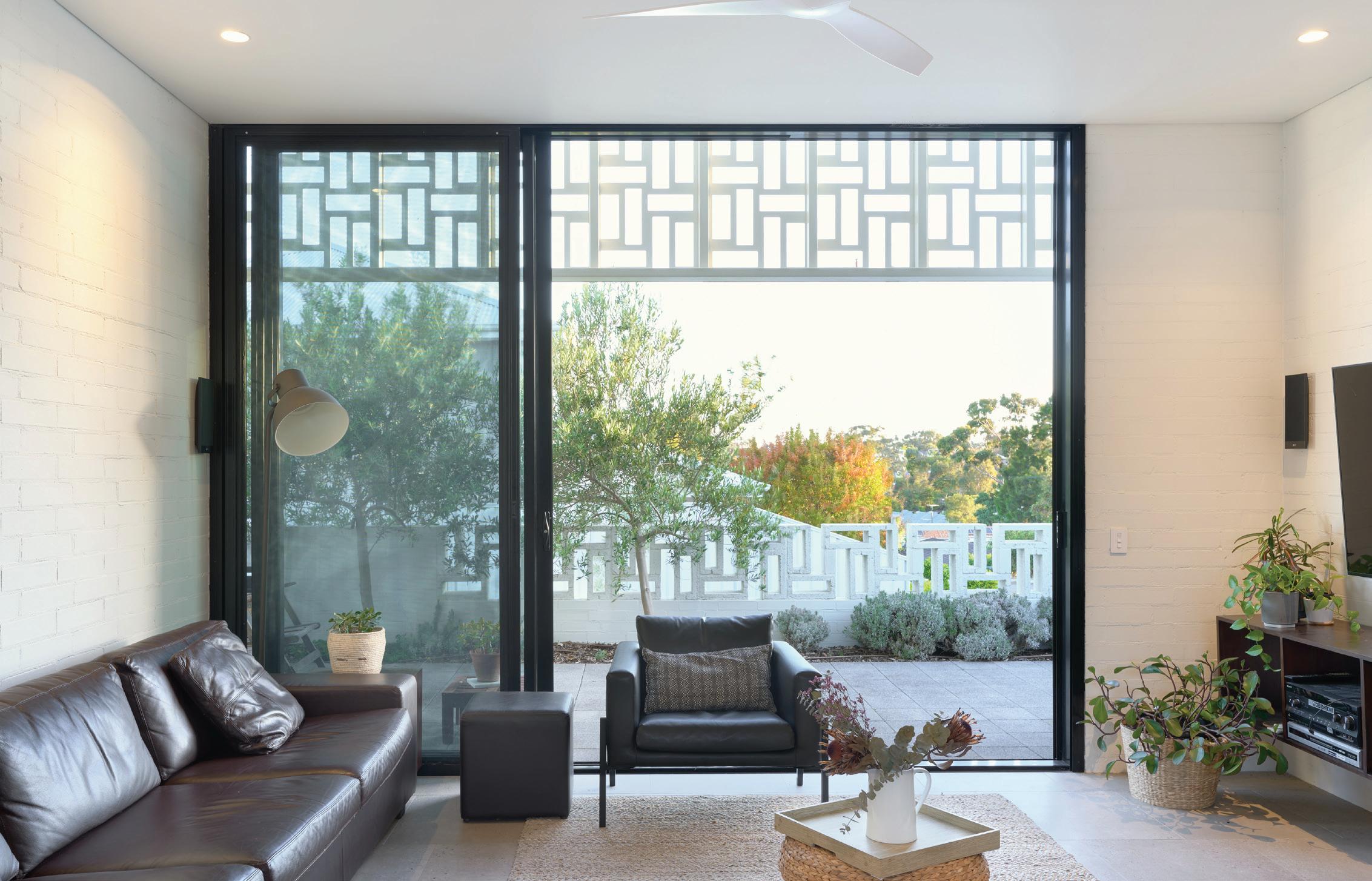 • Tilt-and-turn operable windows can be secured at a 120mm opening so windows don’t need imposing security screens. Houses have a security screen entry door.