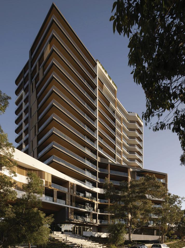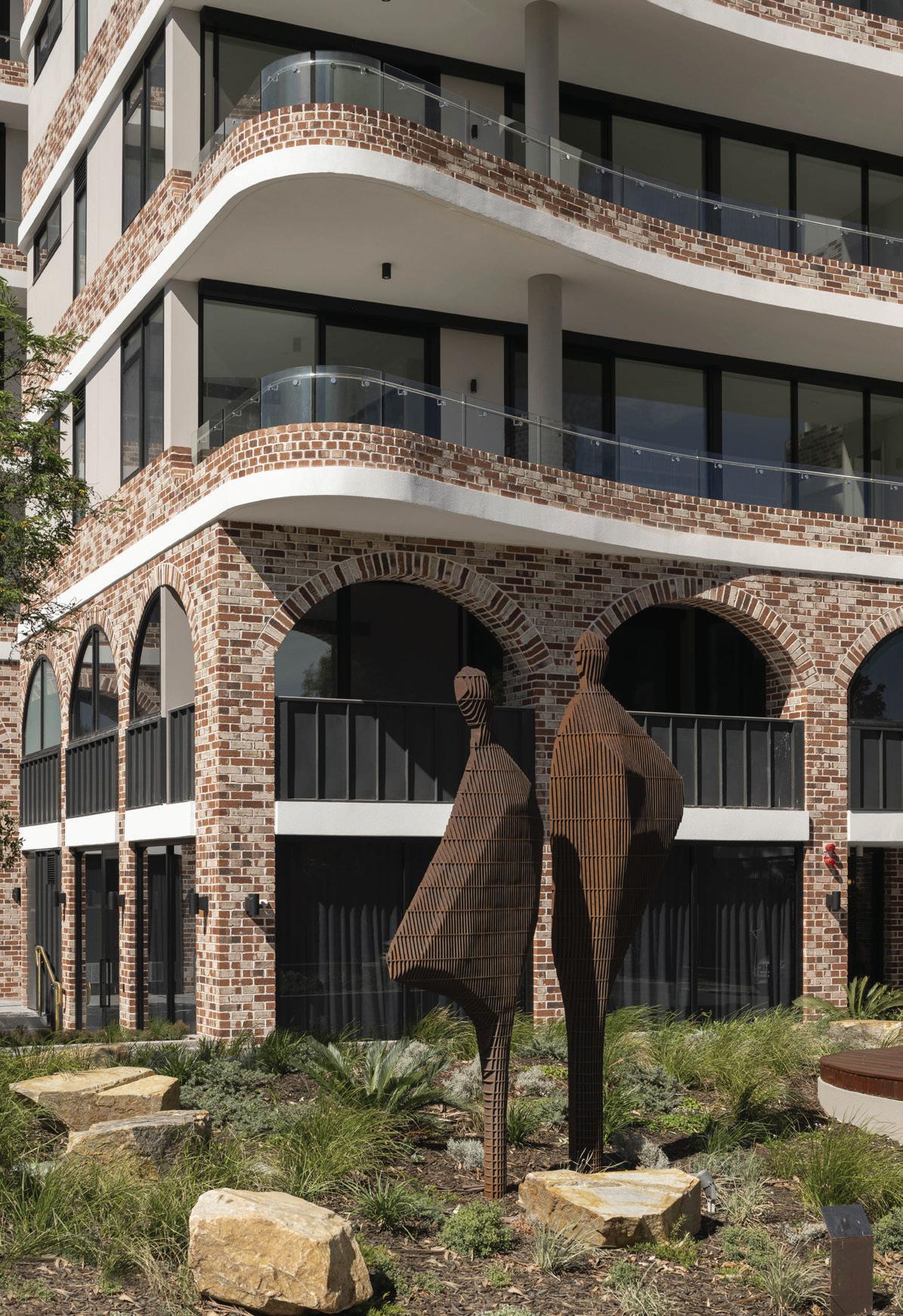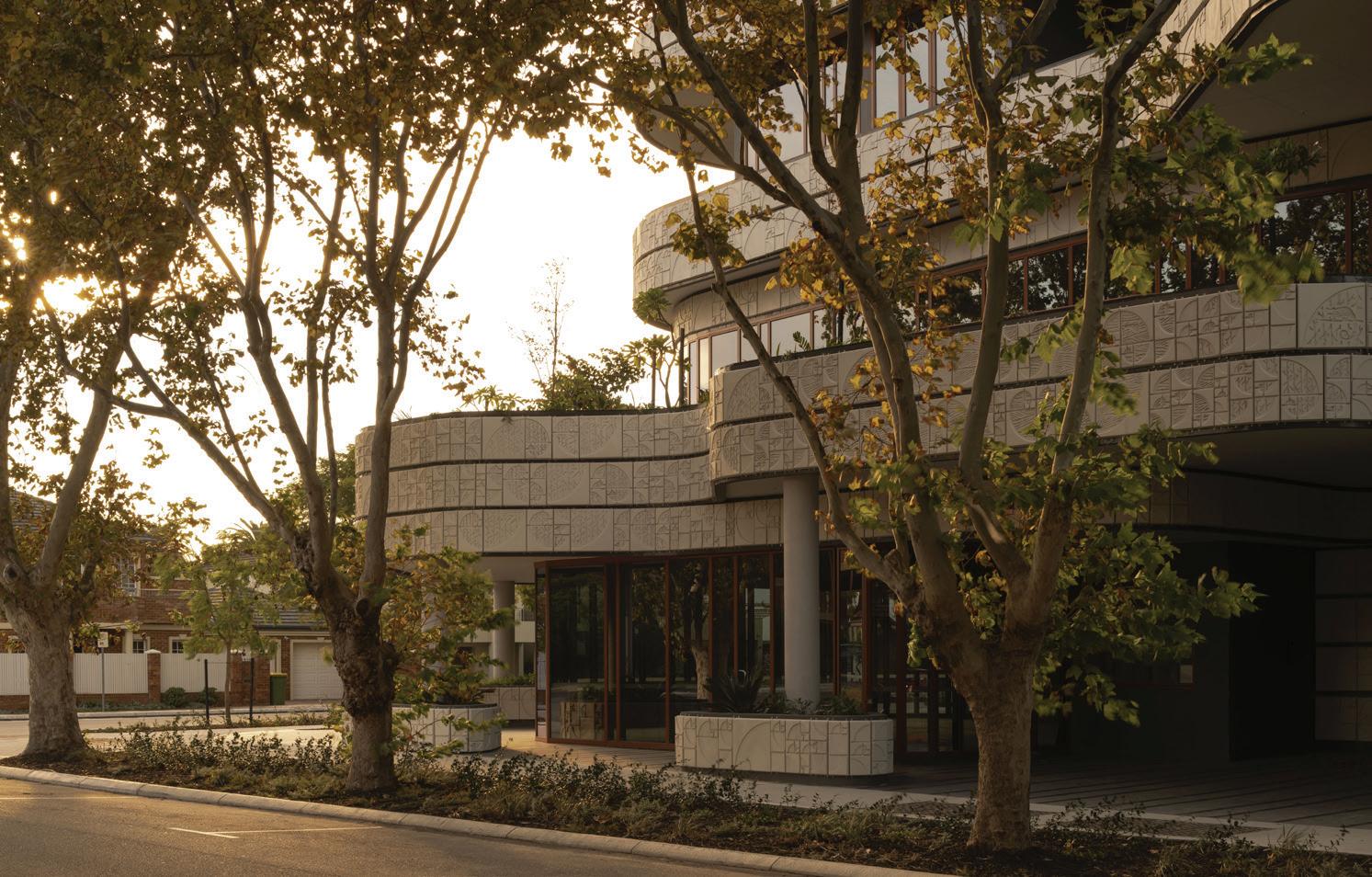 The Grove residences on the border of Claremont, Cottesloe and Peppermint Grove was one of the few major consolidated sites in the neighbourhood that had ability to absorb the density required to alleviate the pressure of rezoning from local heritage streets and their significant mature trees. A needs analysis for a radius of 500m around the site identified a lack of public space and so the decision was made to open up 38% of the site to public access. This new public space incorporates a streetfront amphitheatre ,children’s playground, bocce court, and substantial gardens which provide access to services such as a delicatessen, restaurant, homecare and gym.