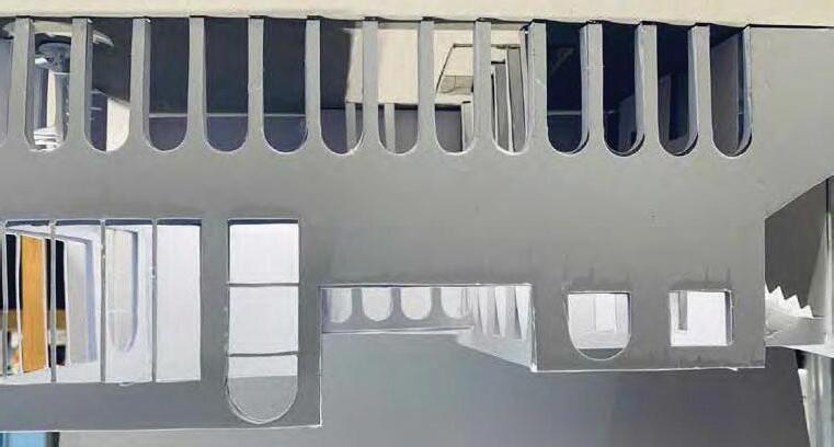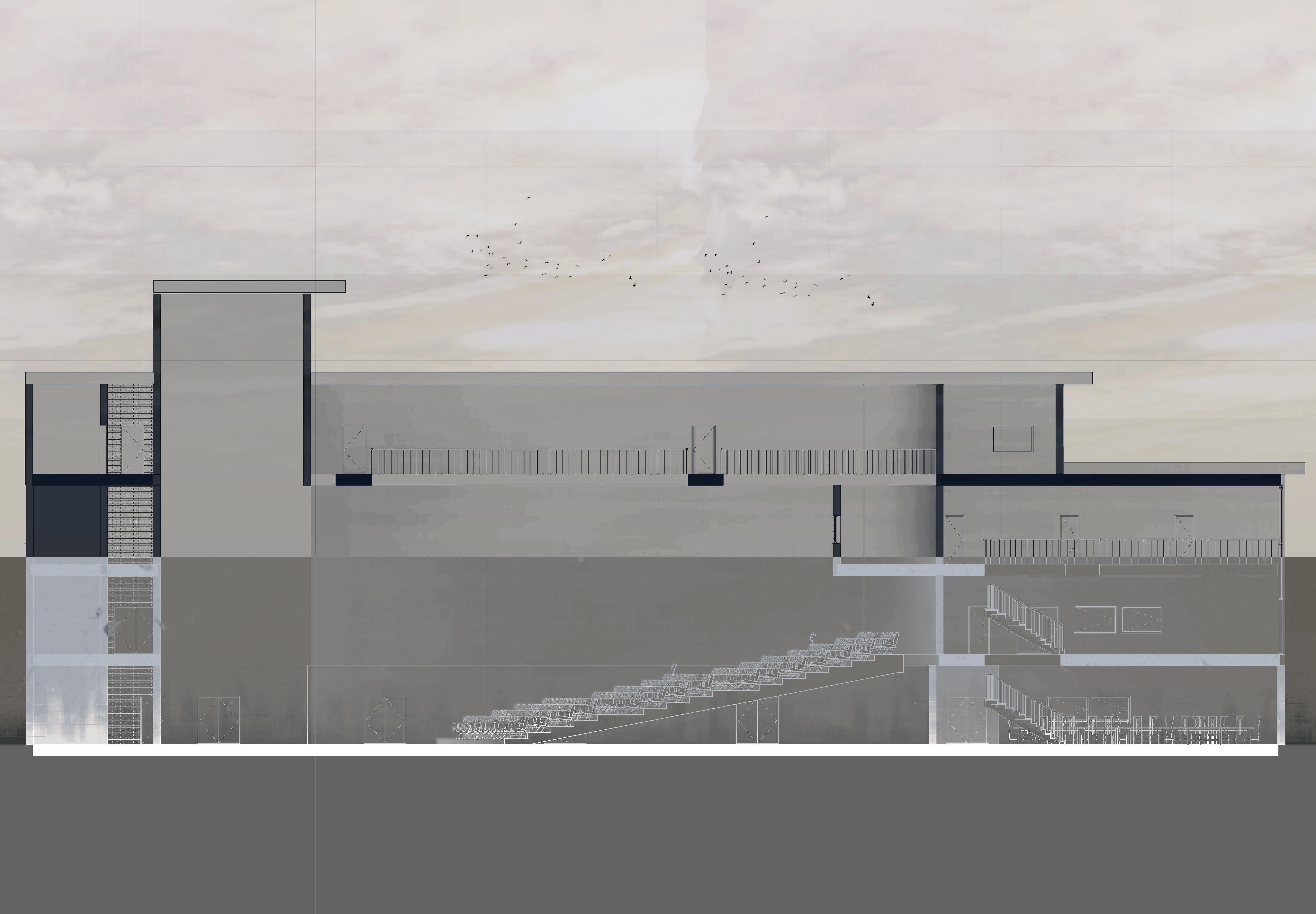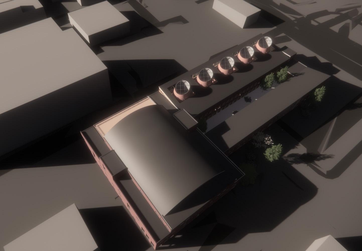 Third Floor Plan - Scale 1:250 Second Floor Plan - Scale 1:250 1-Library 2 - Computer Suite 3 - Social Student hub 4 - Group Music Room A 5 - Group Music Room B 6 - Fire Stairs 7 - Male W/C 8 - Female W/C 9 - Classroom 10 - Classroom 11 - Class Room 12 - SchoolEntrance Atrium/Informal Performance space 13 - Reception 14 - Unisex W/C 15 - Studio 16 - Studio 17 - Costume Workshop 18 - Green Room 19 - Changing Rooms 20 - Plant Room 21 - Scenery Workshop 22 - Kitchen 23 - Restaurant 24 - Under seat storage 25 - Theatre Stage 26 - Stage Right 27 - Stage Left 28 - Multifuntional Dance and Drama Performance Pods. 29 - PT Area 30 - Gym 31 - Seating Area 32 - Class Room 33 -Music Room 34 - Recording Studios 35 - Classroom 36 - Classroom 37 - Female Wardrobe 38 - Male Wardrobe 39 - Storage 40 - Cleaning Cupboard 41 - Box Office 42 - Bar 43 - Public Entrance/Theatre Foyer 44 - Seating Area 45 - meeting Room 46 - offices 47 - Private rehearsal rooms 48 - Group rehearsal 49 - Storage 50 - Sitting Room 51 - Kitchenette 52 - Roof Terrace 53 - Tech office Sound 54 - Tech office Light 55 - Tech Bridges 3