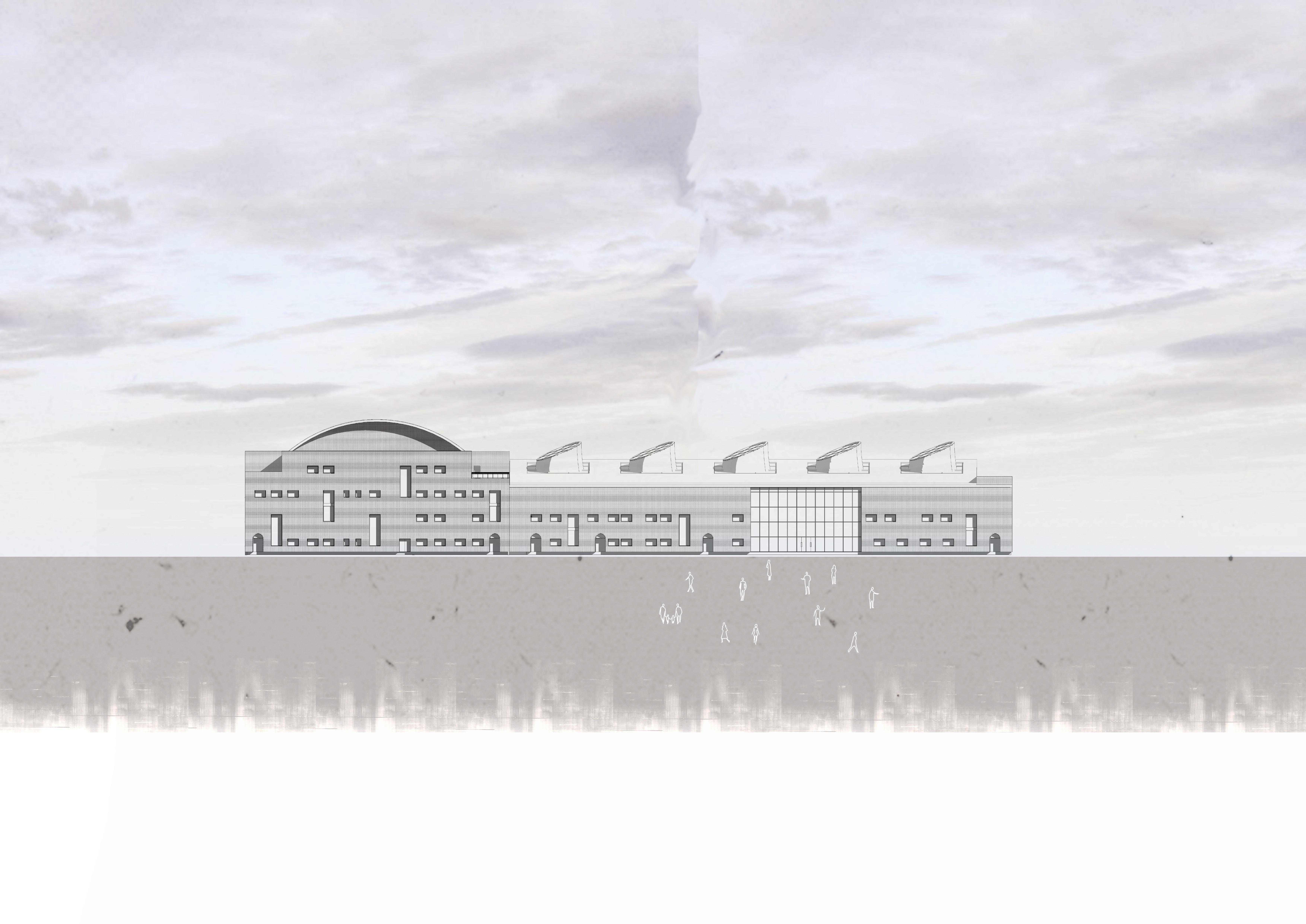 First Floor Plan - Scale 1:250 Ground Floor Plan - Scale 1:250 1-Library 2 - Computer Suite 3 - Social Student hub 4 - Group Music Room A 5 - Group Music Room B 6 - Fire Stairs 7 - Male W/C 8 - Female W/C 9 - Classroom 10 - Classroom 11 - Class Room 12 - SchoolEntrance Atrium/Informal Performance space 13 - Reception 14 - Unisex W/C 15 - Studio 16 - Studio 17 - Costume Workshop 18 - Green Room 19 - Changing Rooms 20 - Plant Room 21 - Scenery Workshop 22 - Kitchen 23 - Restaurant 24 - Under seat storage 25 - Theatre Stage 26 - Stage Right 27 - Stage Left 28 - Multifuntional Dance and Drama Performance Pods. 29 - PT Area 30 - Gym 31 - Seating Area 32 - Class Room 33 -Music Room 34 - Recording Studios 35 - Classroom 36 - Classroom 37 - Female Wardrobe 38 - Male Wardrobe 39 - Storage 40 - Cleaning Cupboard 41 - Box Office 42 - Bar 43 - Public Entrance/Theatre Foyer 44 - Seating Area 45 - meeting Room 46 - offices 47 - Private rehearsal rooms 48 - Group rehearsal 49 - Storage 50 - Sitting Room 51 - Kitchenette 52 - Roof Terrace 53 - Tech office Sound 54 - Tech office Light 55 - Tech Bridges 2