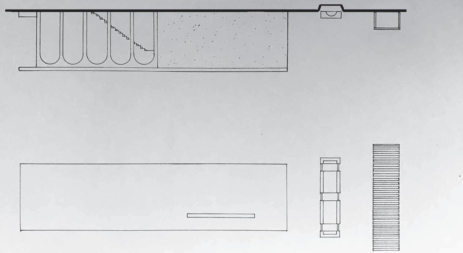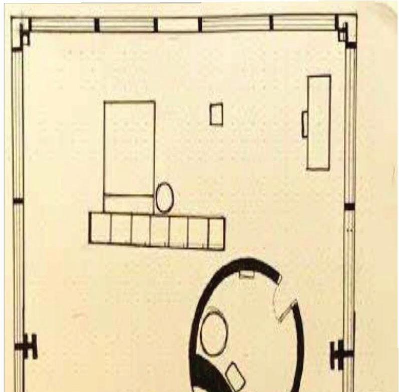0 D0° a n o oQa Q n oQa Q LJ-1.Boat and Bike Storage 2.Circulation 3.Male and Female Changing rooms with shower and W/C 4.Open plan Foyer/Cafe, placed on north side so can be used as exhibition space 5.Classroom/Library 6.Office 7.research lab 8.Plant room 9.3 x Unisex w/c with sink 10.Kitchen 11.Lecture Theatre Ground Floor Plan scale 1:100 Basement 14
