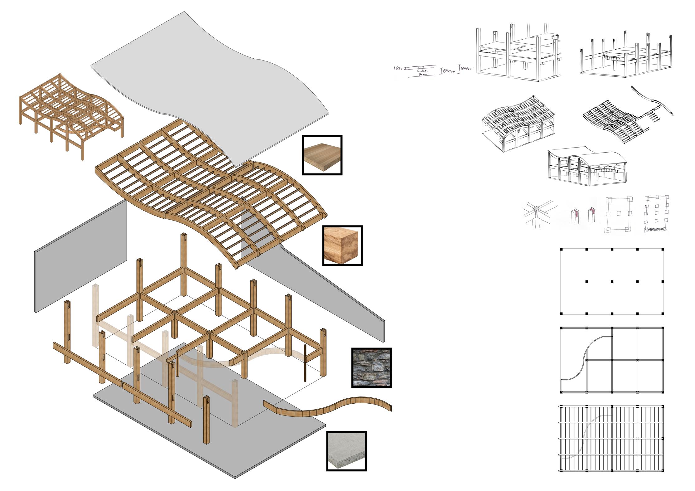 Inspired by the mountainous landscape around the site and throughout the Lake District, I decided to make the staircase a feature of the visitor centre. While the upper half appears normal and simple, from the landing moving down, they begin to curve to one side. In doing so they meander repeatedly, appearing like contours. They reiterate the significance of the steepness each visitor has overcome to reach the building.