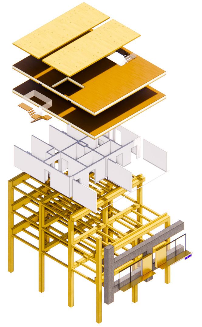 WILL BE LEFT EXPOSED IN THE CEILINGS OF THE APARTMENTS TO LIGHTEN UP THE INTERIOR SPACE AS WELL AS HAVING A PASTORAL TONE