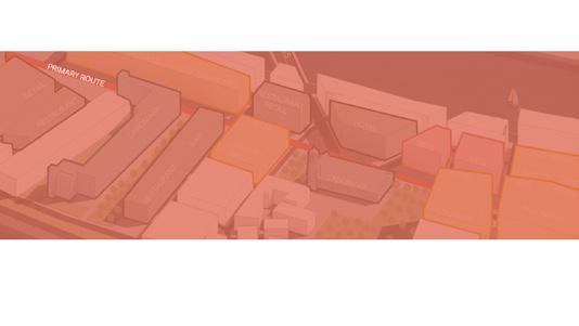 •Secondary routes will feed into primary routes and have a narrower street section whilst decreasing slightly in density. Theses areas will focus mainly on office space and mixed used industrial units.