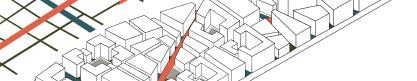 Tertiary roads are formed in such a way to create alley ways, they will have shared surfaces to give a sense of openness in a small space. The narrow streets will have lower building heights so that users do not feel cramped in.
