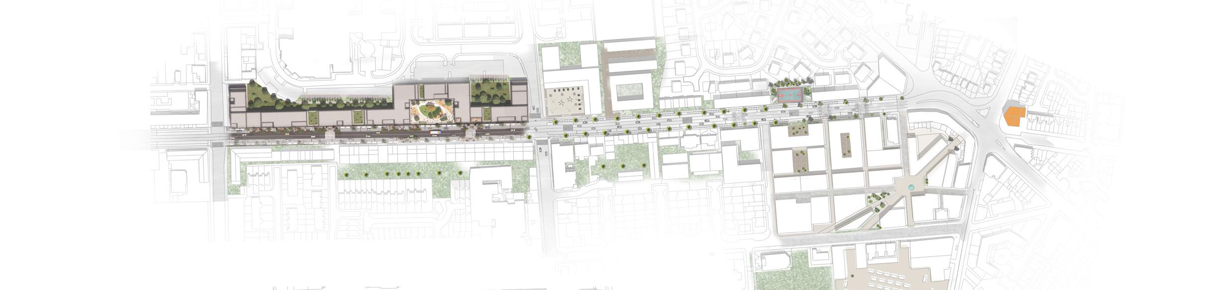 •Tursary routes will be interwoven with the first two and make up the “back streets”. This is where residential in lower density will form.