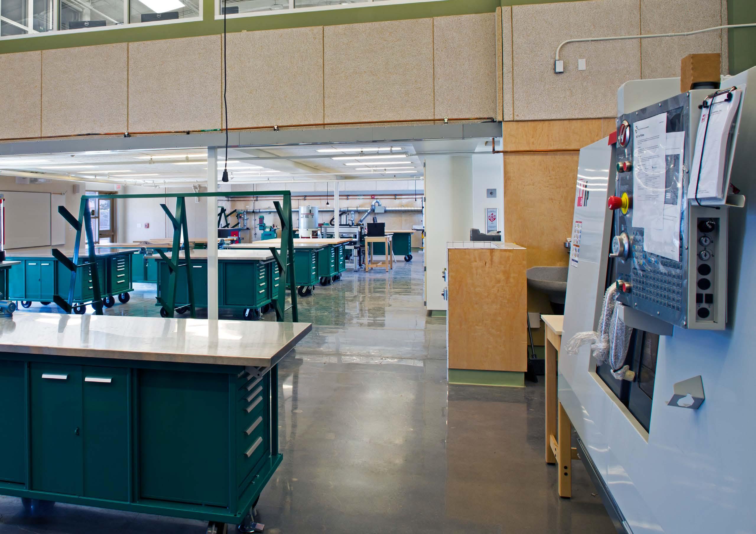 The learning environments encourage tinkering and lingering–allowing students to work on long-term projects in alignment with the campus curriculum. Facilitating the projectbased learning activities are the makerspaces, connected directly to the classroom environment and encompassing both interior and exterior spaces..