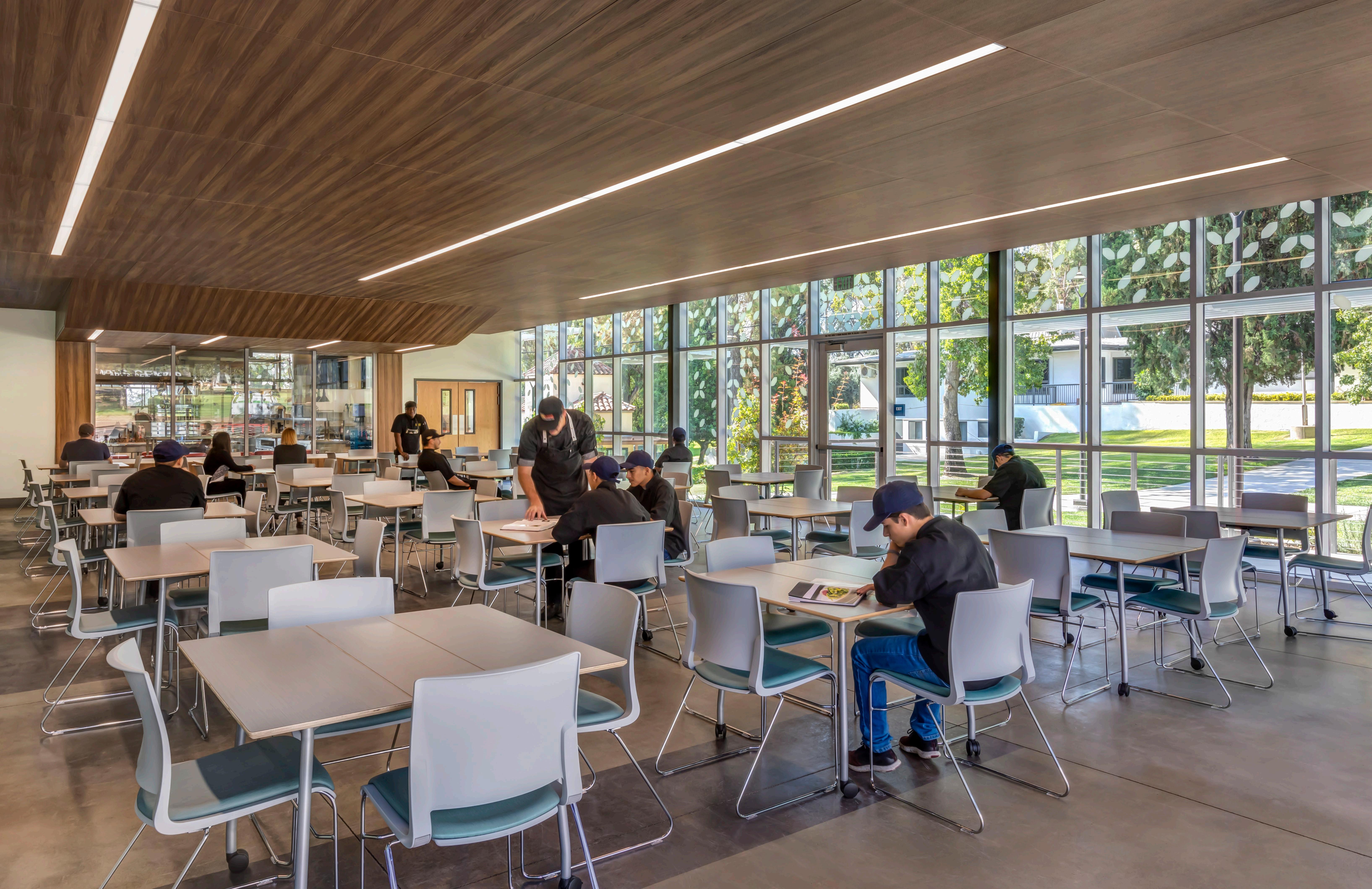 The Max Scott Culinary Arts Center was envisioned as a key component of the school’s mission.This new center represents a transformation and expansion of the existing cafeteria into a new culinary arts learning environment. This inspiring and forward-thinking facility is sited at the heart of the Boys Republic campus in Chino Hills, California, serving as a beacon and symbol of hope for the school and neighboring community. The Center was designed to resonate with the at-risk student population, while also reflecting the tradition and history of both the school, campus, and culture.