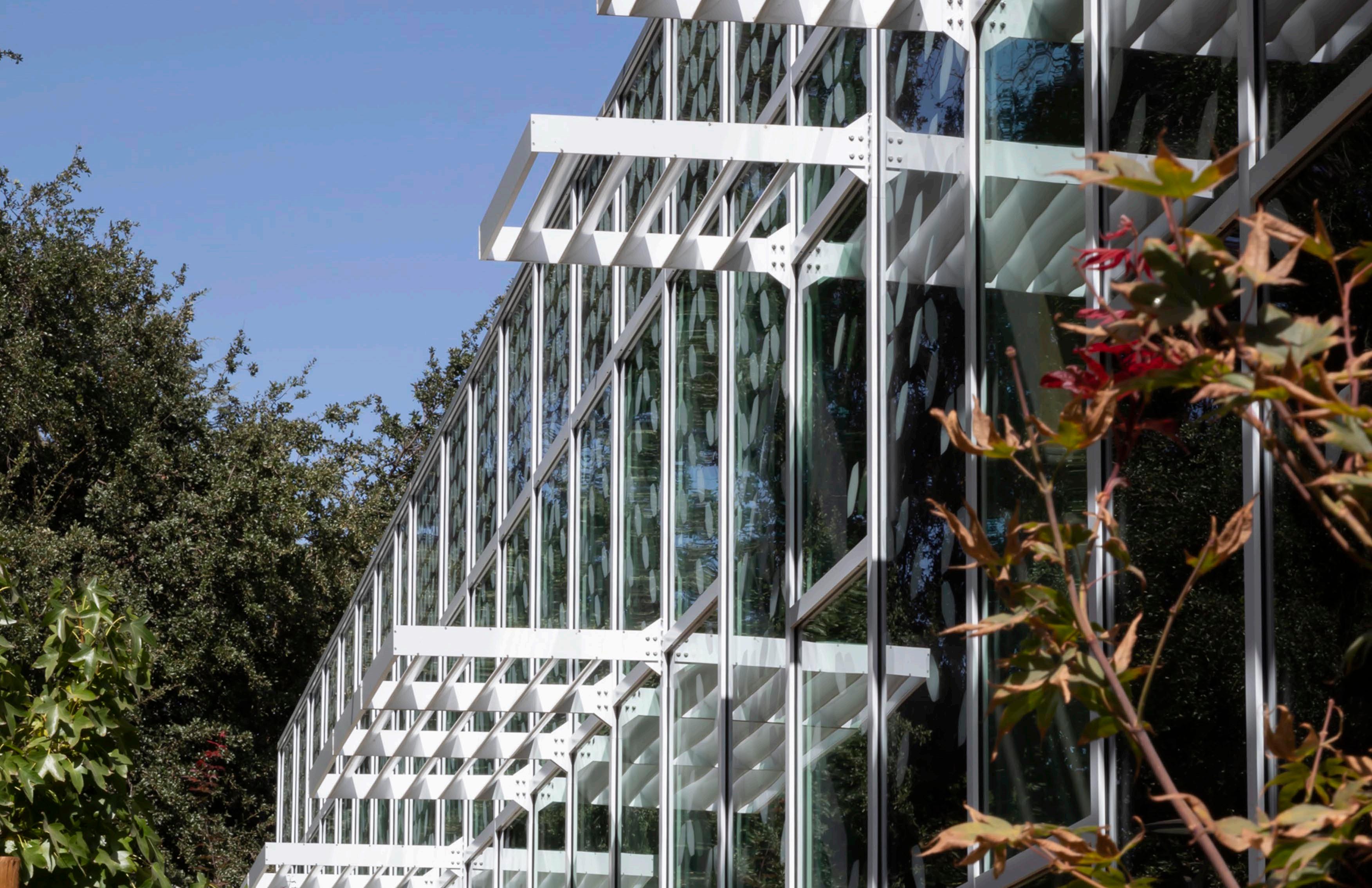• A silkscreen frit pattern on the glass prevents bird collisions while still allowing the glass box to maximize natural light and visibility.