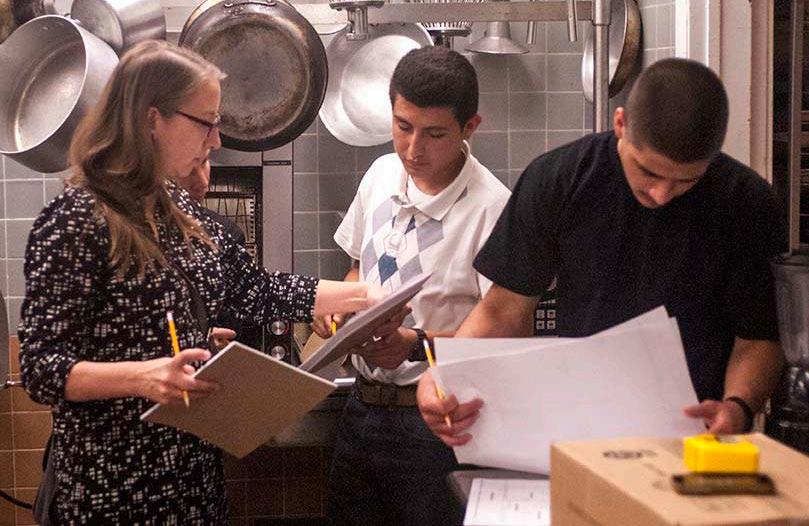 Of note, the project’s design process included directly engaging Boys Republic students through mentoring sessions that provided opportunities for them to immerse themselves in the architectural process. Students were guided through the process of measuring spaces and confirming as-built drawings of the existing culinary arts facility. They were taught how this process can help to inform the planning and design of new facilities and how they might integrate with existing ones.