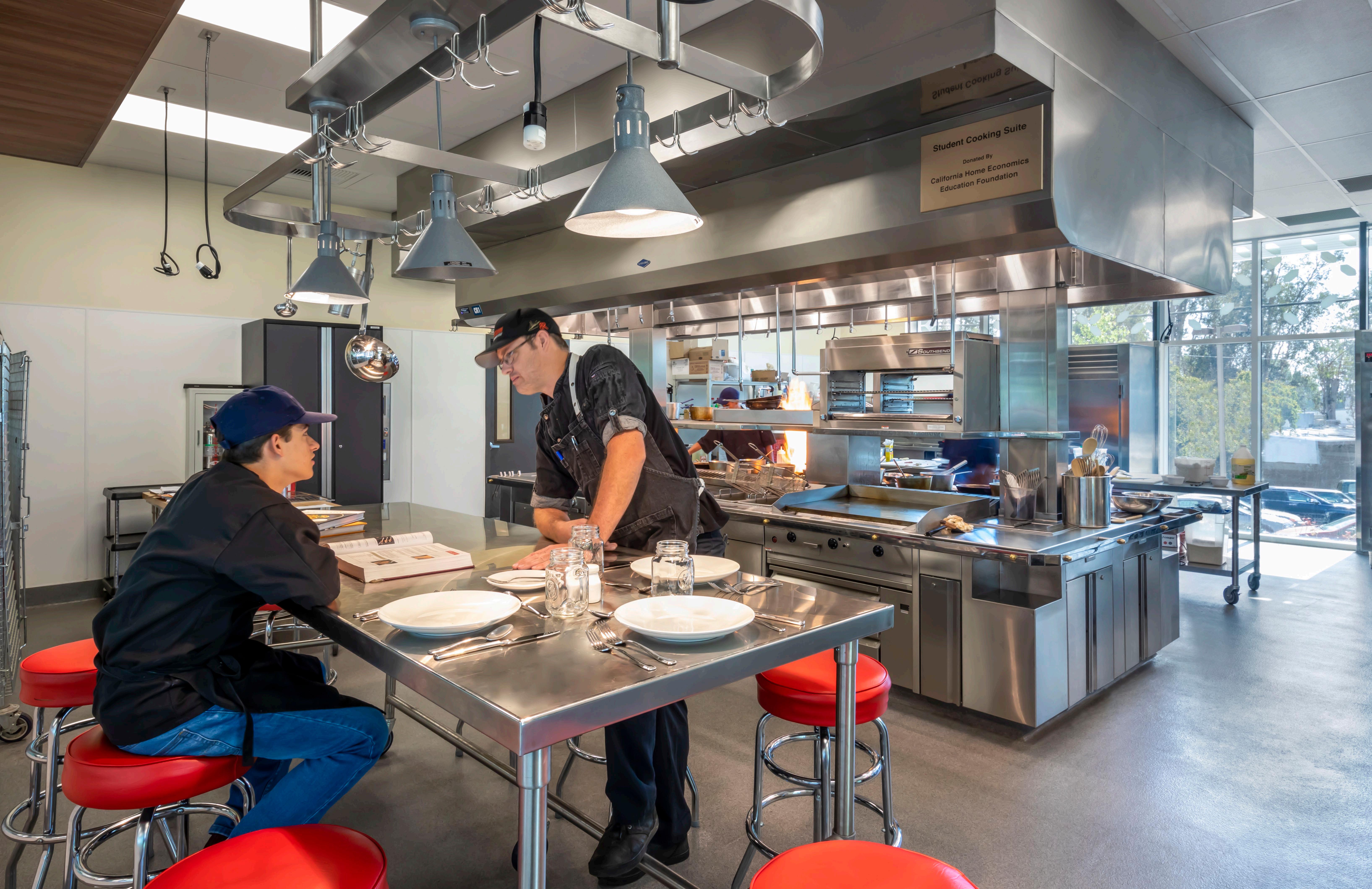 The Teaching Kitchen within the new Culinary Arts Center is a Career Technical Education (CTE) environment. It was designed with multiple teaching and training stations as a way to address three key goals: