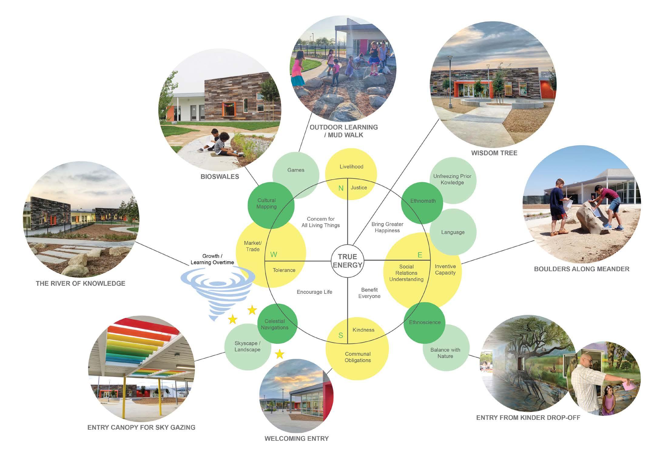 Since its founding in 2003, Gateway Community Charters (GCC) has been dedicated to offering an inspiring and challenging educational program for students in need in the Sacramento area. The Rancho Del Paso campus, GCC’s first newly constructed school, reflects this commitment, designed to serve K-12 students from three different campuses. For younger learners, the campus features specially designed kindergarten and early childhood spaces that differ from those for older students, addressing developmental needs. These early education areas are surrounded by theme-based work centers, inspired by the growth of a tree—starting as a seedling and evolving through nature-inspired themes like colorful gems and caterpillars on leaves. This design not only supports students’ natural development but also positions the Rancho Del Paso campus as a potential community hub in an underserved area of Sacramento, promoting high-quality, holistic learning from the earliest years.