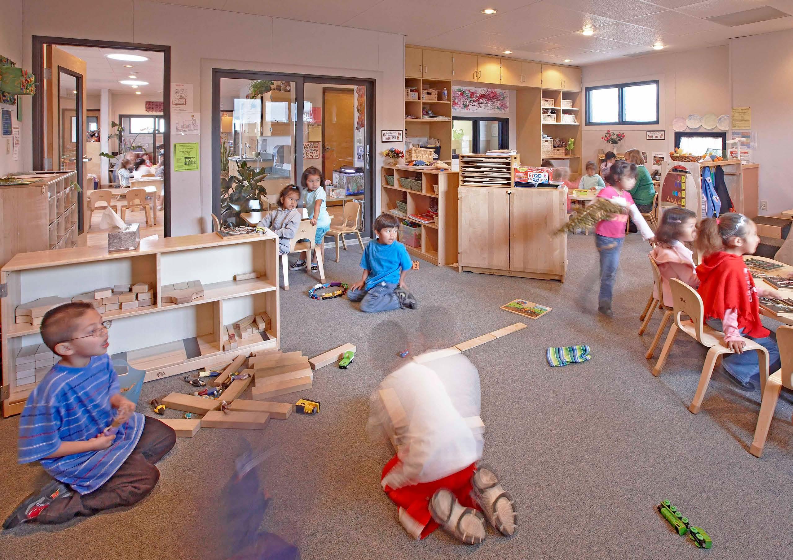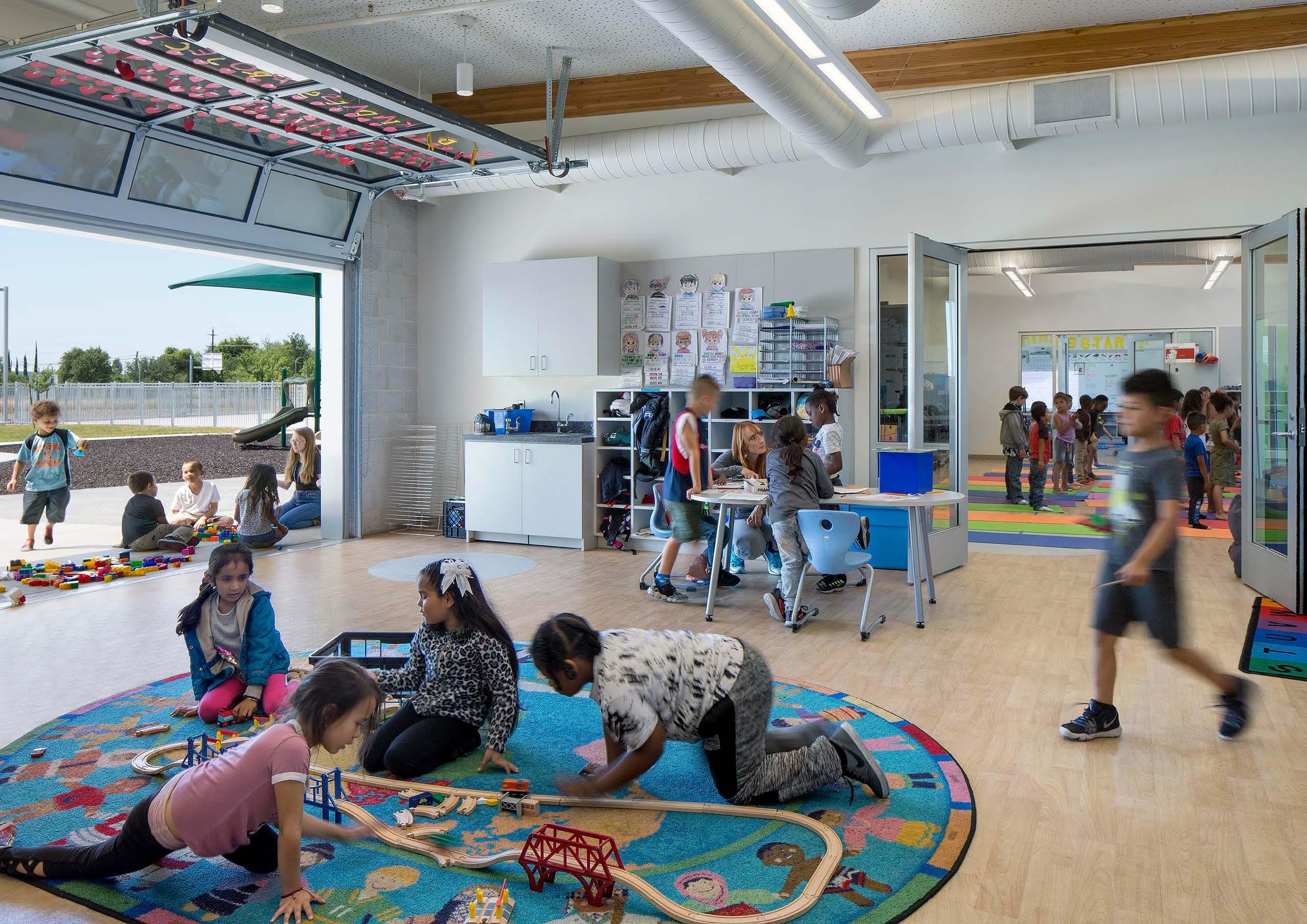 The Carolyn Wylie Child Development Center is designed to ignite creativity and curiosity in young children, providing a space that fosters both learning and development. The facility is filled with natural light and features flexible, open spaces that encourage group learning, interaction, and dynamic activities.