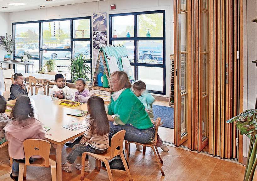 Thoughtfully customized elements, such as child-height windows, interior cabinetry, and learning walls, transform these modular buildings into an engaging environment tailored to preschool students. Adjacent to the center, the playground invites exploration with winding trails that lead to a campsite, a water fountain, and areas planted with native vegetation, offering a sensory-rich experience. This well-designed facility proves that learning can be transformative, demonstrating how cost-effective yet thoughtful spaces can have a lasting impact on early childhood education.