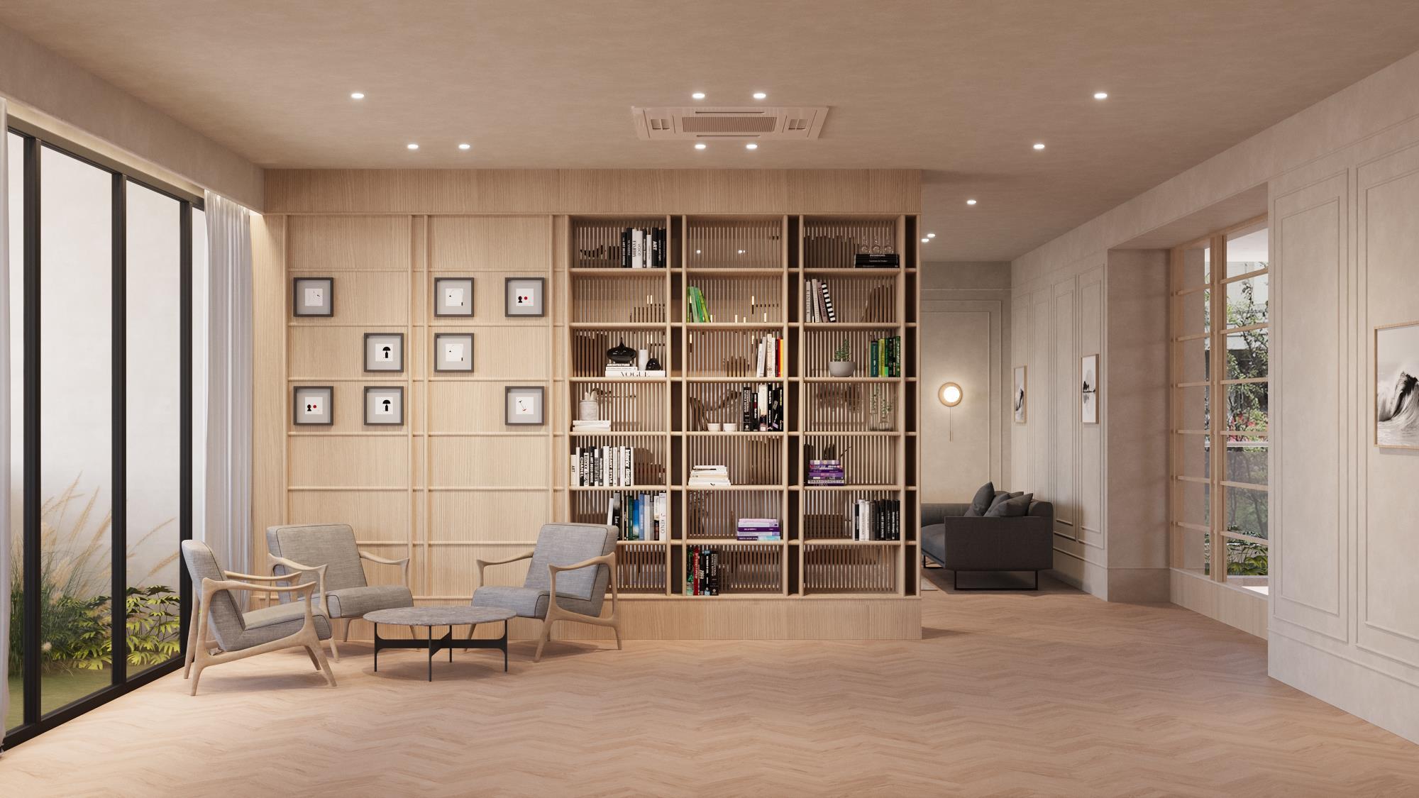 Pinnacle is a multifunctional space designed to cater to a variety of interests and creative pursuits. The room features movable furniture and modular elements, allowing it to be easily such as arts and crafts, music, or fitness sessions. This adaptability ensures the space meets the needs of all residents, fostering creativity and encouraging social interaction. The design essential part of the community's common spaces.