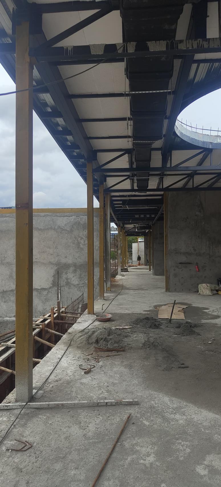 The steel structure is a critical component of the building’s framework, providing both support and aesthetic appeal. Its design ensures stability while allowing for flexibility in the layout and design of interior spaces. The steel staircase, as shown in the images, is both functional and visually striking. It complements the industrial feel of the space while maintaining a sense of lightness, thanks to its open riser design and sleek metal handrails. This combination of elements underscores the project's emphasis on blending structural efficiency with modern design aesthetics.