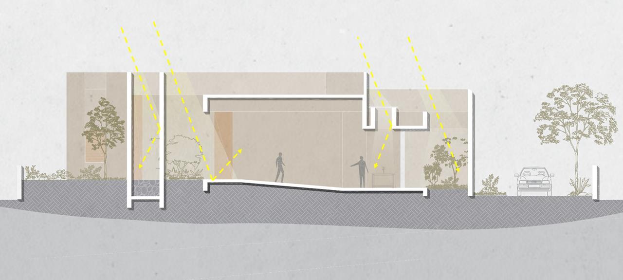 The residence embraces the vernacular style, reflecting Dheeraj’s affinity for traditional architecture. The design emphasizes a strong connection between indoor and outdoor spaces, achieved through large openings that invite natural light while maintaining privacy. The use of skylights and pocket openings enhances the play of light and shadows throughout the day, creating cozy and inviting spaces. Dheeraj’s Residence is envisioned as a blend of vernacular charm and modern functionality. The focus on light, shadow, and the interplay between indoor and outdoor spaces will create a warm, inviting home that reflects the cultural roots and personal tastes of its inhabitants.