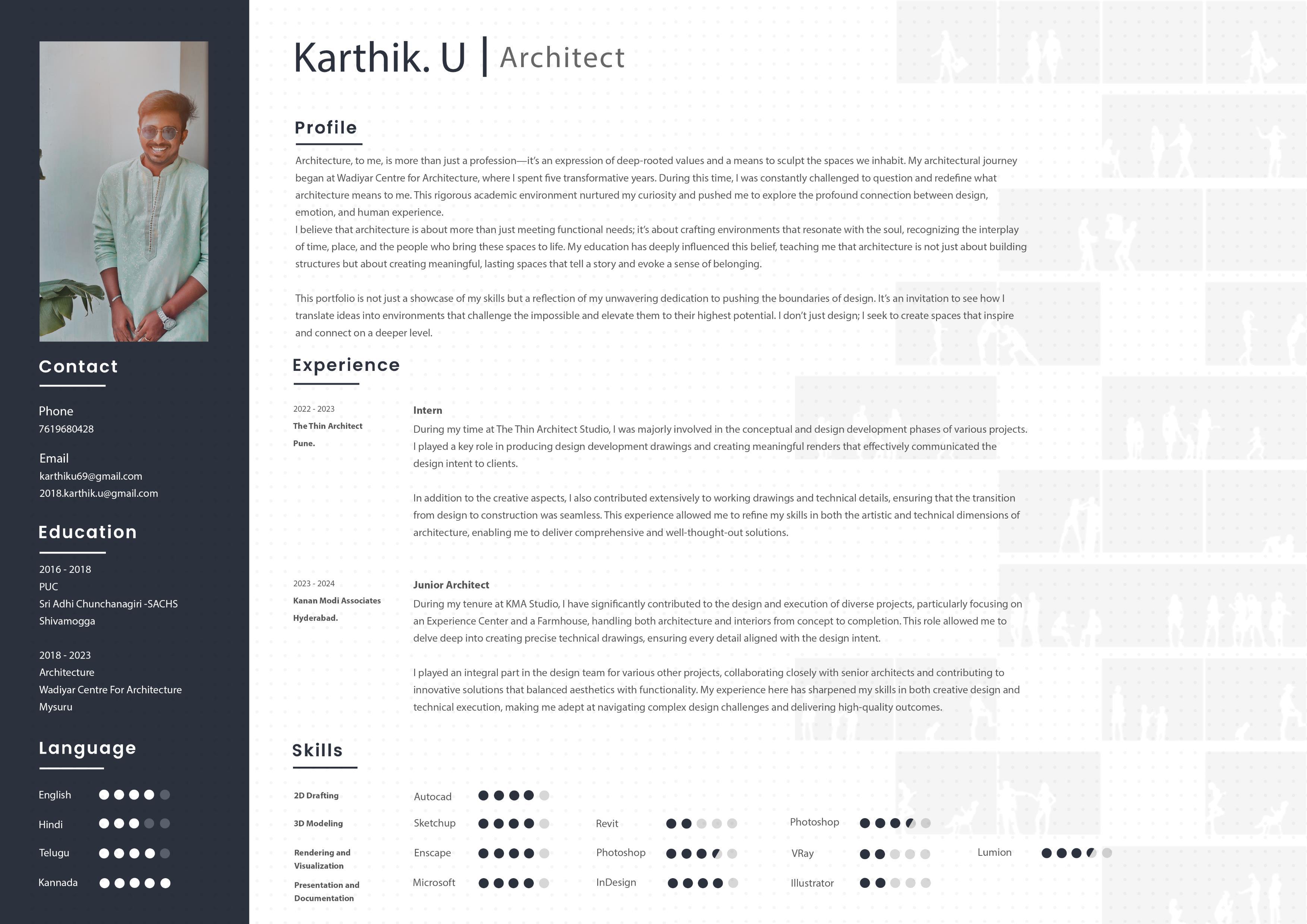 The Sunitha Lingareddy project stands as a beacon of sustainable living and innovative design, and I am proud to have contributed to its realization. This experience not only honed my technical skills but also deepened my appreciation for the art of creating spaces that resonate with both functionality and beauty.