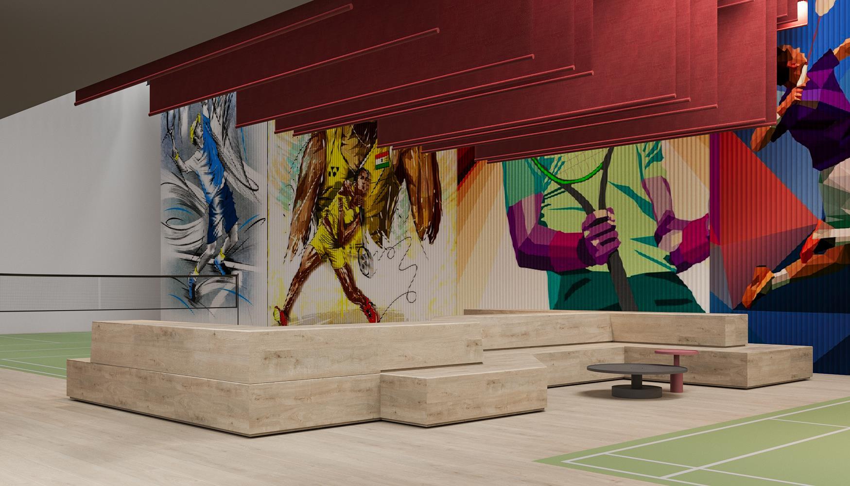 Club House is a dynamic area designed for both recreation and community interaction. The that create a sense of openness and energy, ideal for a variety of sports and activities. tennis, badminton, and squash, the space is equipped to meet the needs of both casual and functionality, with durable materials that ensure long-lasting use while maintaining a clean,