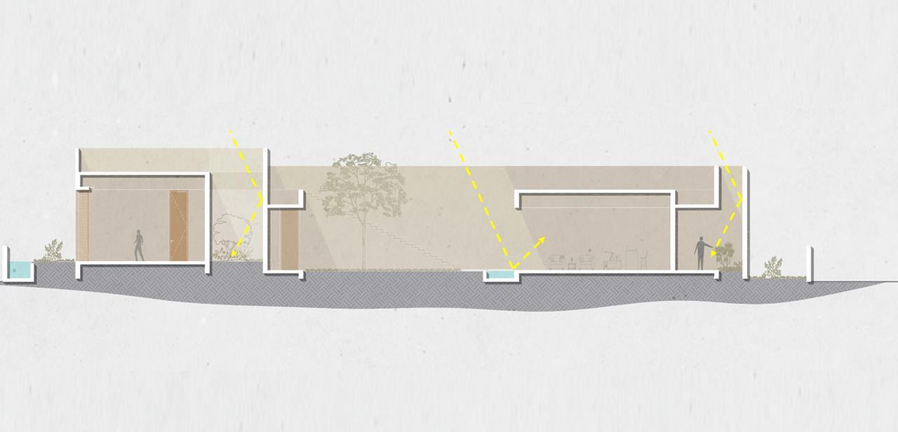 Large Openings: Designed to cater to the exterior, allowing ample light and creating a seamless transition between indoor and outdoor spaces. The use of skylights and pocket openings enhances the play of light and shadows throughout the day, creating cozy and inviting spaces.
