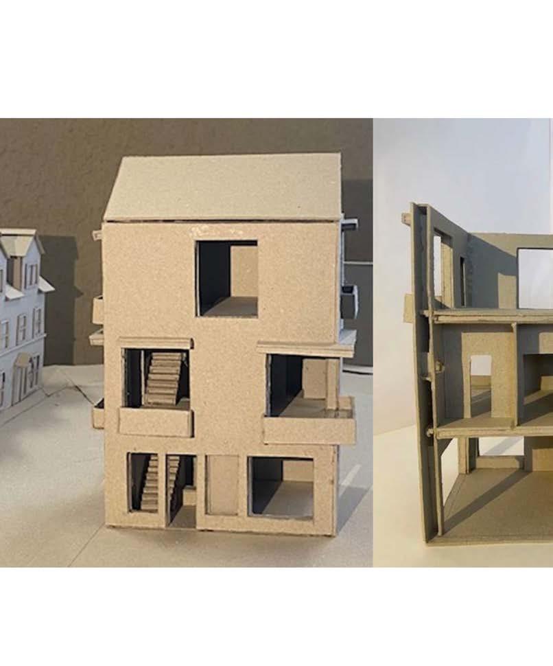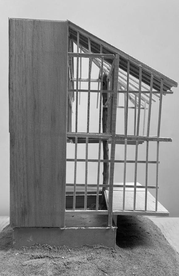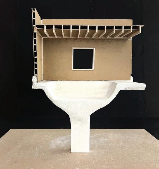 The first semester commenced with an exploration of the campus and sketching in Project 1: Hidden Stories, during which we discovered architectural treasures while getting acquainted with one another. In Project 2: Re-Cycle Shelter, students acquired site analysis skills, designing for specific user needs, and constructing structures using recycled materials. The progression of design projects relied on weekly skills workshops, including orthographic drawing, collaging, and introduction to stairs, which played a crucial role in enabling students to effectively communicate their ideas and bring their designs to life. For the final project in semester one, students individually undertook the design of an Artist’s Studio for an artist/maker, incorporating social spaces and