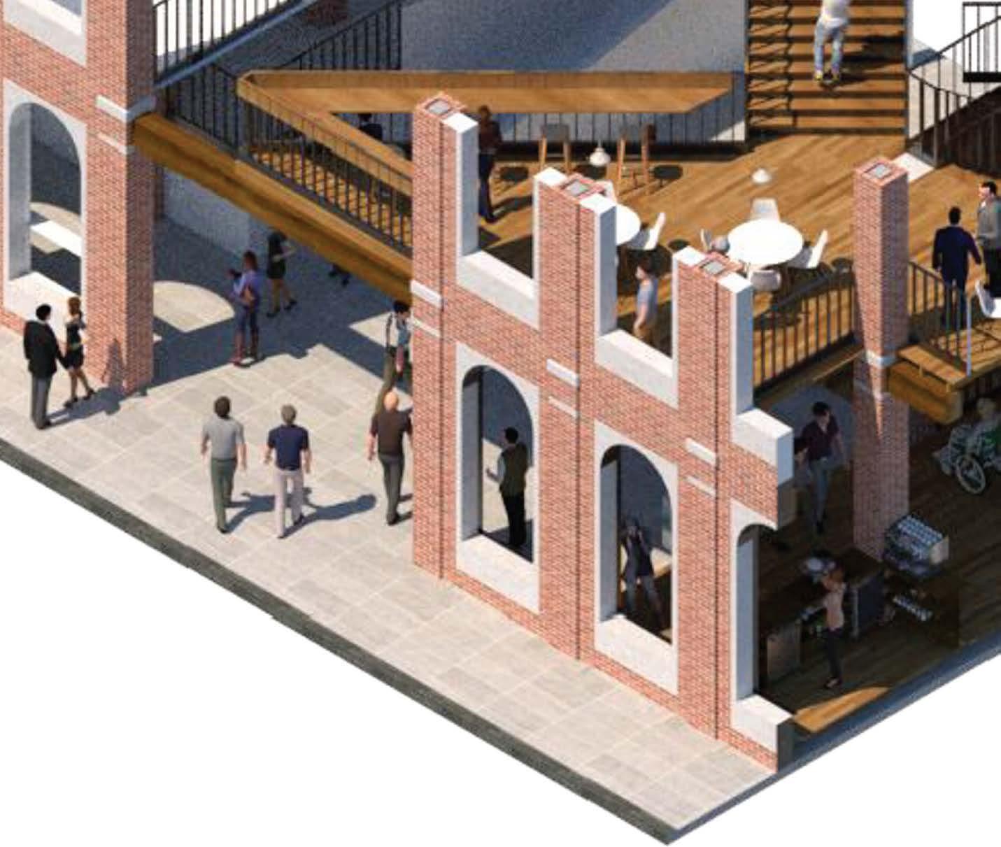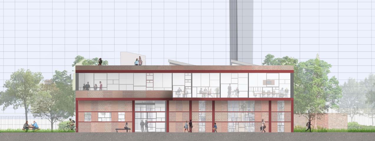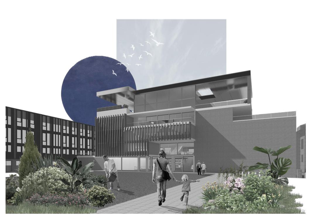 “The joy of destruction” is a phrase I have carried through since my concept film. It influenced both the material choices and the form of the scheme. The form resembles a smashed brick, with recycled brick in the facade- acting as an aggregate within concrete slabs.