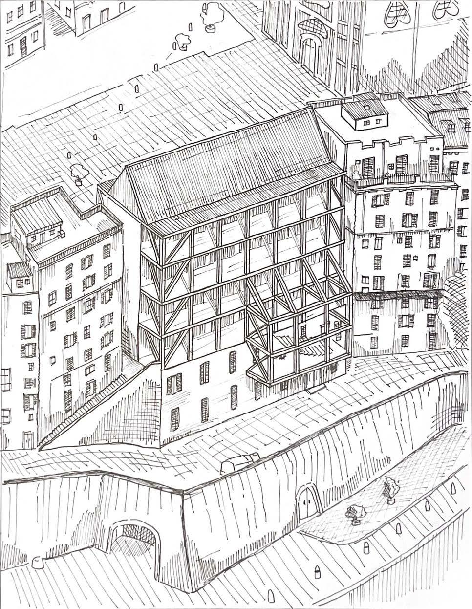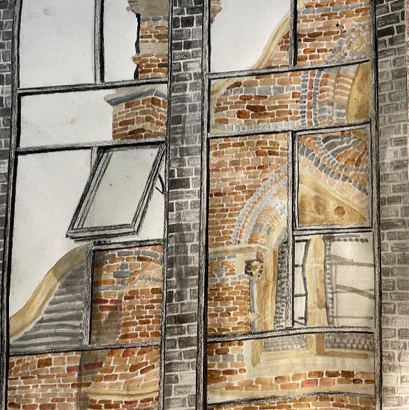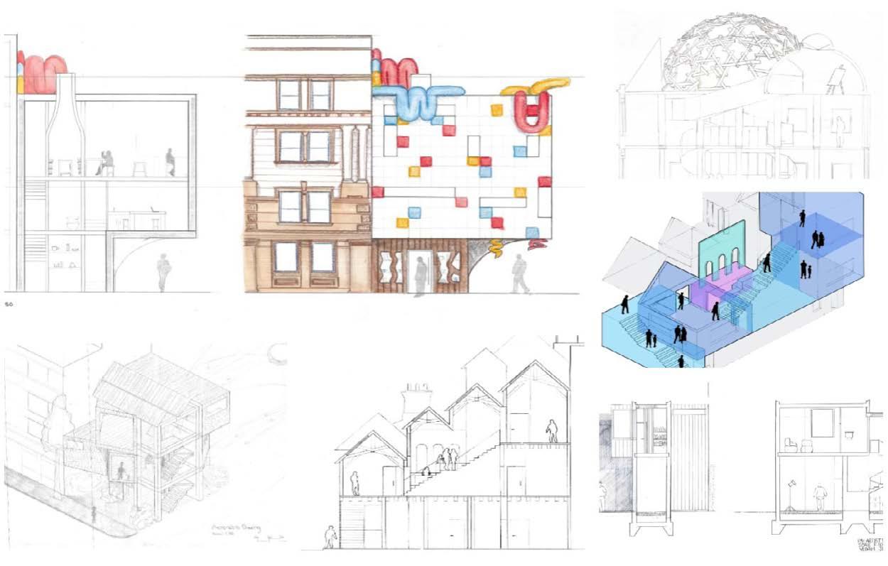 Within the Practical Skills for Art Portfolio Module students are required to develop sketchbook content through sketching and writing that records their observations and thoughts as they explore the Belfast context. They then develop larger detailed studies of particular aspects of the built environment that interest them. Skills workshops covering composition, rendering, perspective, photography, print making and colour run alongside these developing studies. The final design piece within this module allows the students to express their individual creativity by designing a simple building by considering it as a sectional perspective.