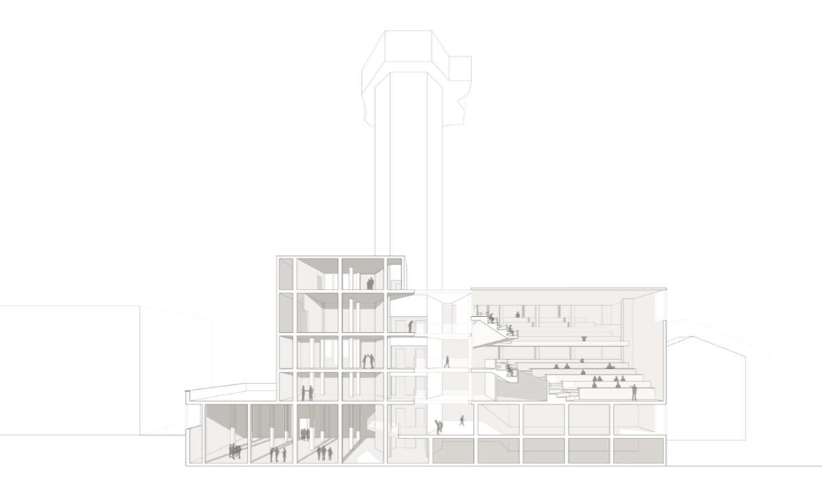 The studio focused on initial research and documentation, a critical appraisal of the urban context, of strategic moves that consider removal, retention, enhancement and addition – repurposing the 1970s Administration Building to address the future needs and aspirations of Queen’s University through a design of a staff/student hub, a place for a range of facilities, activities and engagements. As part of the brief, colleagues were asked to consider the next stage in the life cycle of the QUB Administration Building for a campus of the future, and a building that is contributing to the development of Belfast’s roadmap to net-zero carbon.