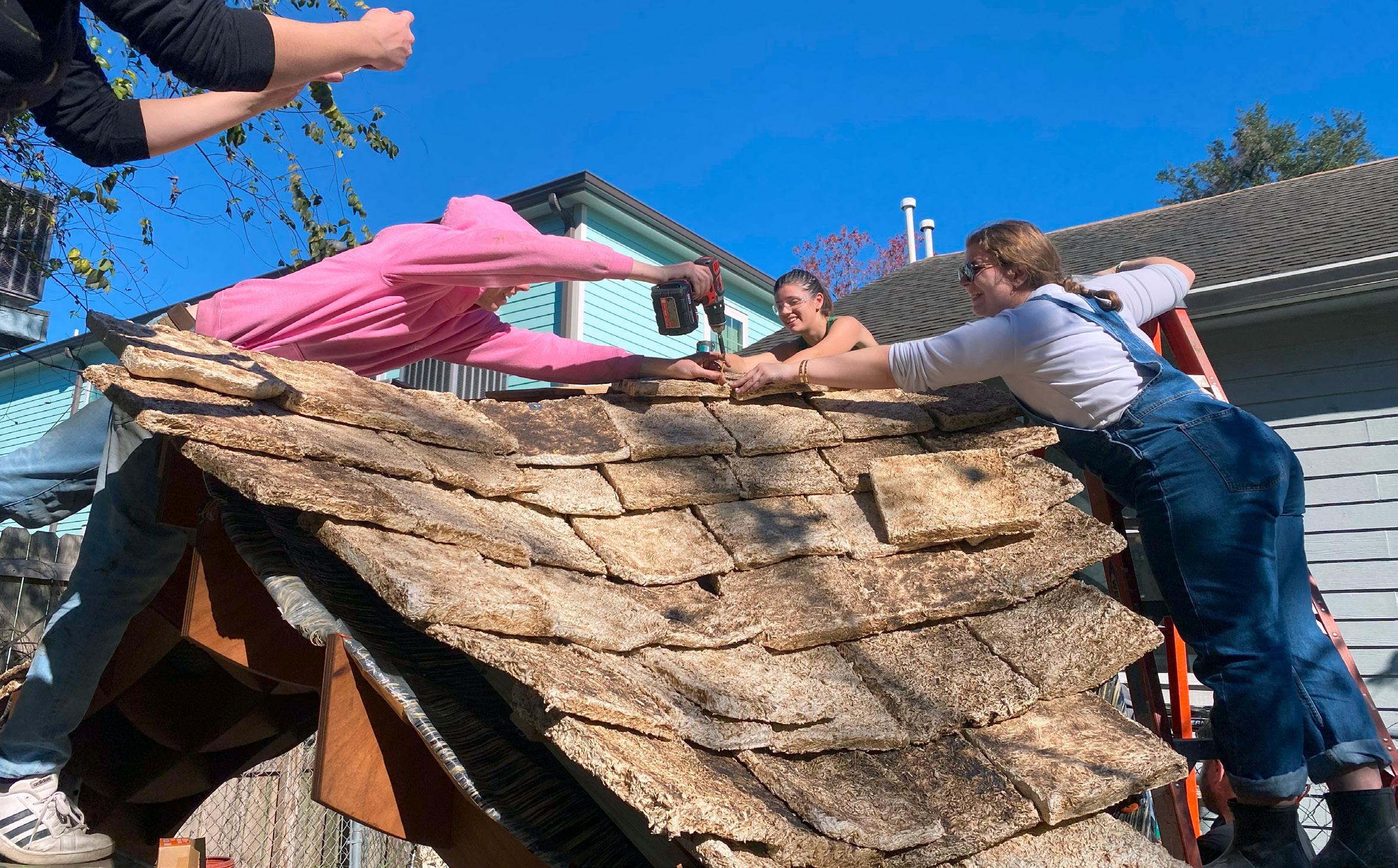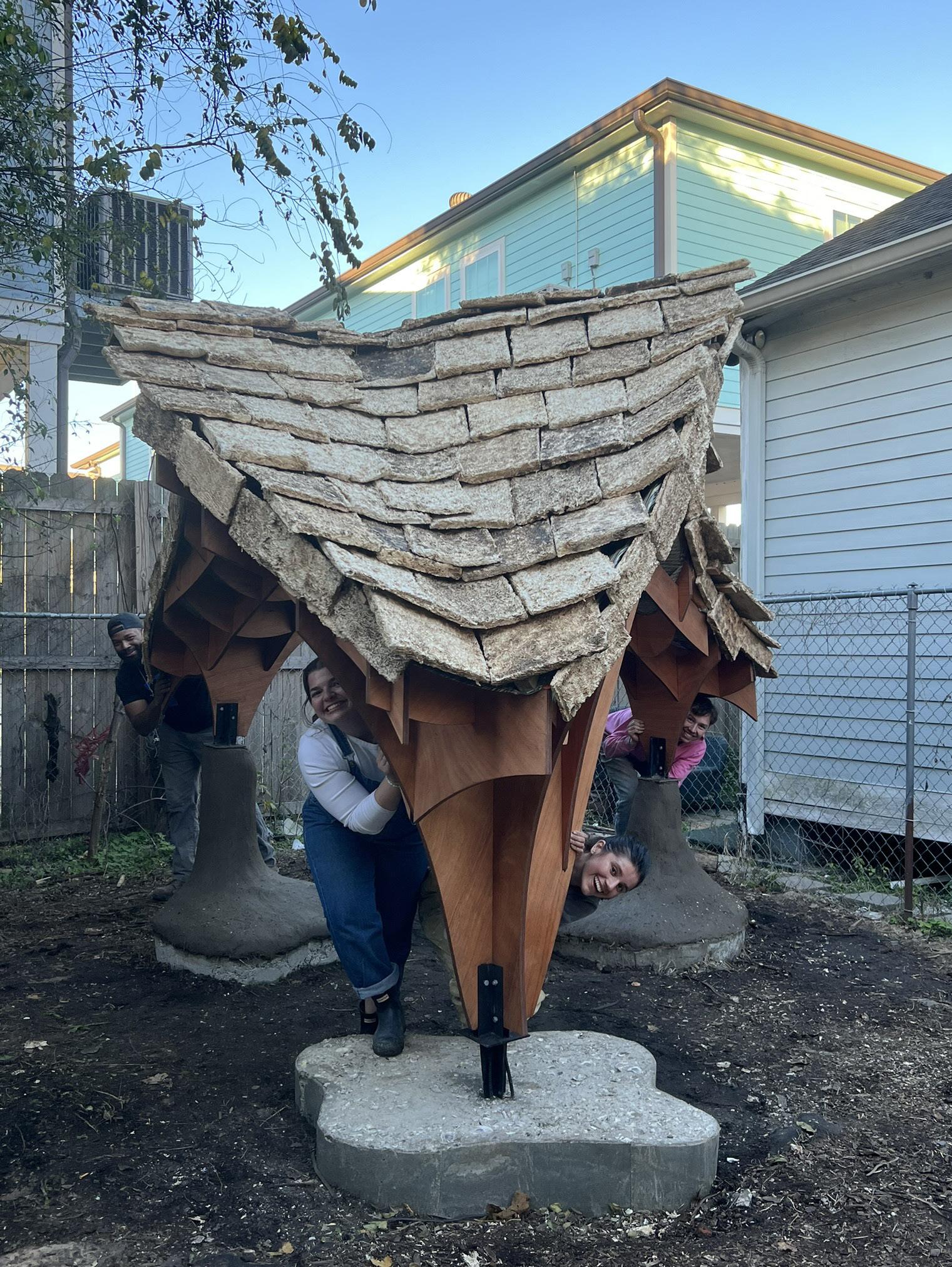 My role in this project was the initial conception of combining the new and old methods of construction together, the initial shape/form of the structure, material selection, growing of mycelium, and final assembly.