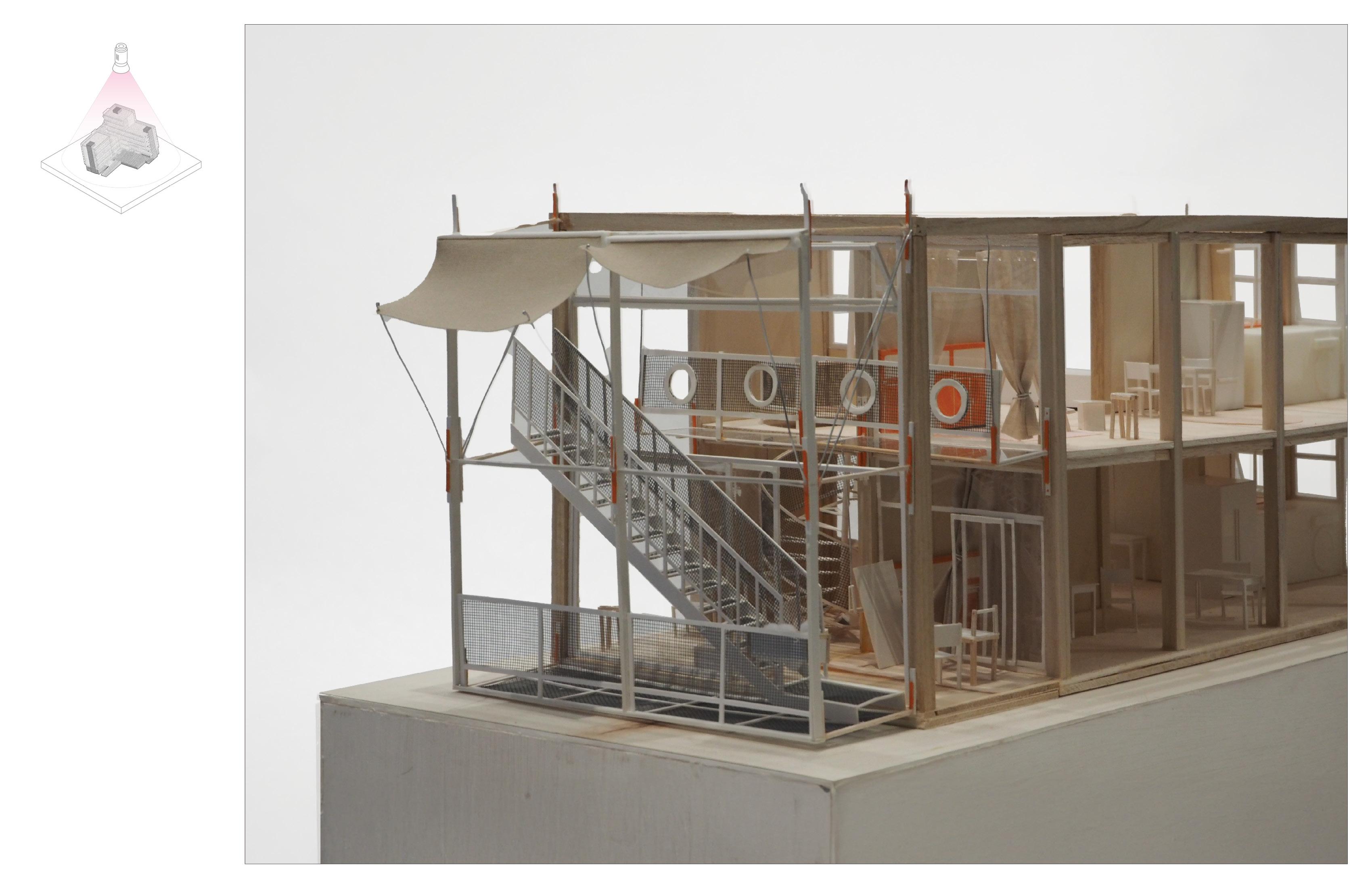 I focused on reimagining the corridor, seeing it as more than just a cold, linear passage. Like streets in a city, corridors connect living spaces and should foster interaction. Growing up in Korea, where apartments dominate, had never seen corridors as vibrant spaces. To change this, widened them, introduced natural light, and combined two floors into a shared corridor. Inspired by the streets, integrated add-on furniture and attachments, creating opportunities for diverse ways of living and encouraging a sense of community.
