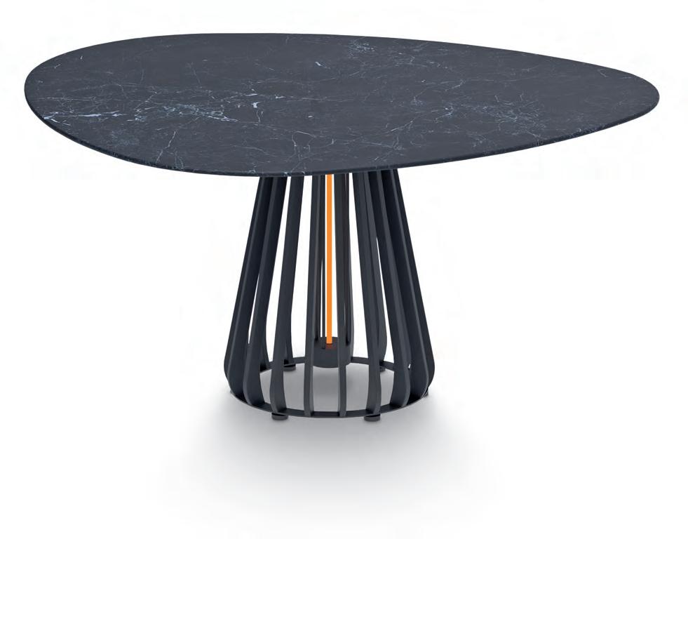 Damit Beine und Füsse auch zu fortgeschrittener Stunde warm bleiben, ist im Fuss des OutdoorTisches «Furniz» ein Heizelement integriert. Erhältlich in einer niedrigen Esstischversion sowie in verschiedenen Grössen und Formen für jede Raumsituation. www.royalbotania.com