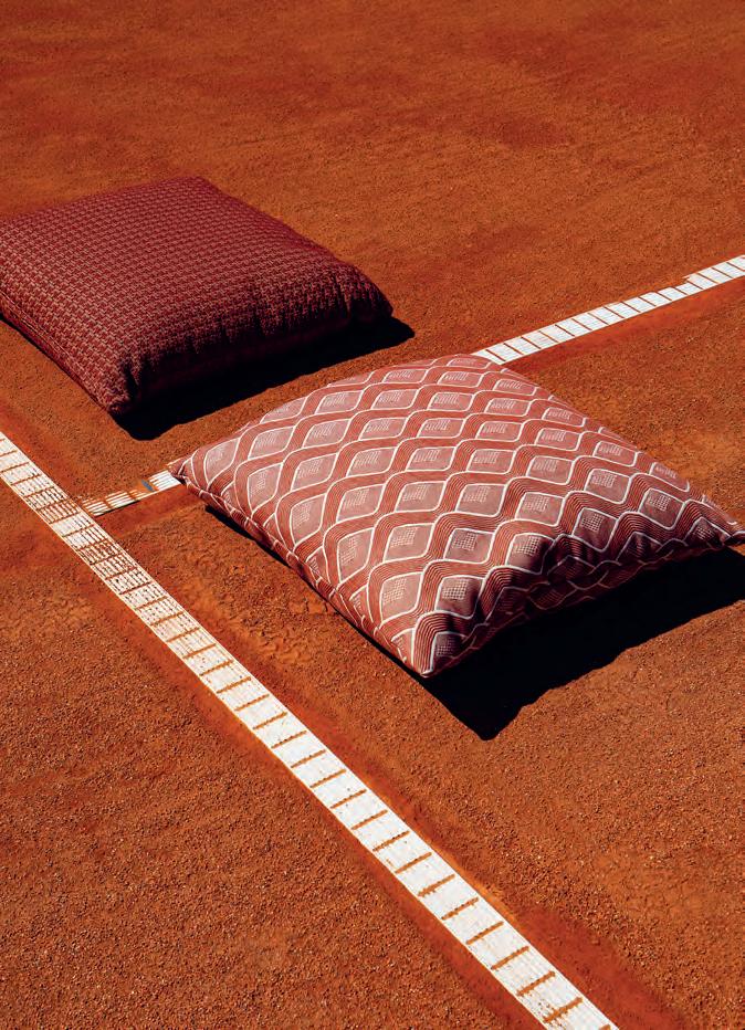 Das Sofa «Mah Jong», das Designer Hans Hopfer bereits in den 1970erJahren entworfen hat, als kultig zu bezeichnen, wäre untertrieben. Die Möglichkeiten der Gestaltung dieser modularen Sitzelemente regen zu immer neuen Ideen an, Räume zu inszenieren. Und was drinnen funktioniert, das kann doch auch draussen klappen, oder? Die Version «Wonderland» lädt zum entspannten Verweilen ein: Die Kissen scheinen auf Plattfor-