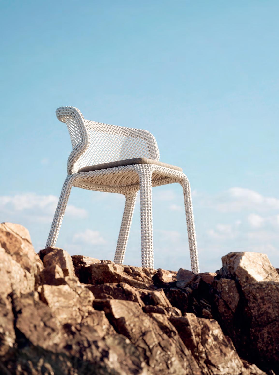 In Muscheln kann man Perlen finden oder sich komfortabel niederlassen. Die Form des Stuhls «Seashell Nuo» ist nämlich inspiriert von der sanft umarmenden, schützenden Form der Meerestiere. Hergestellt ist er aus der neuen, zu 90 Prozent aus pflanzlichen Ressourcen gewonnenen Dedon-EcoCycle-Faser. www.dedon.de