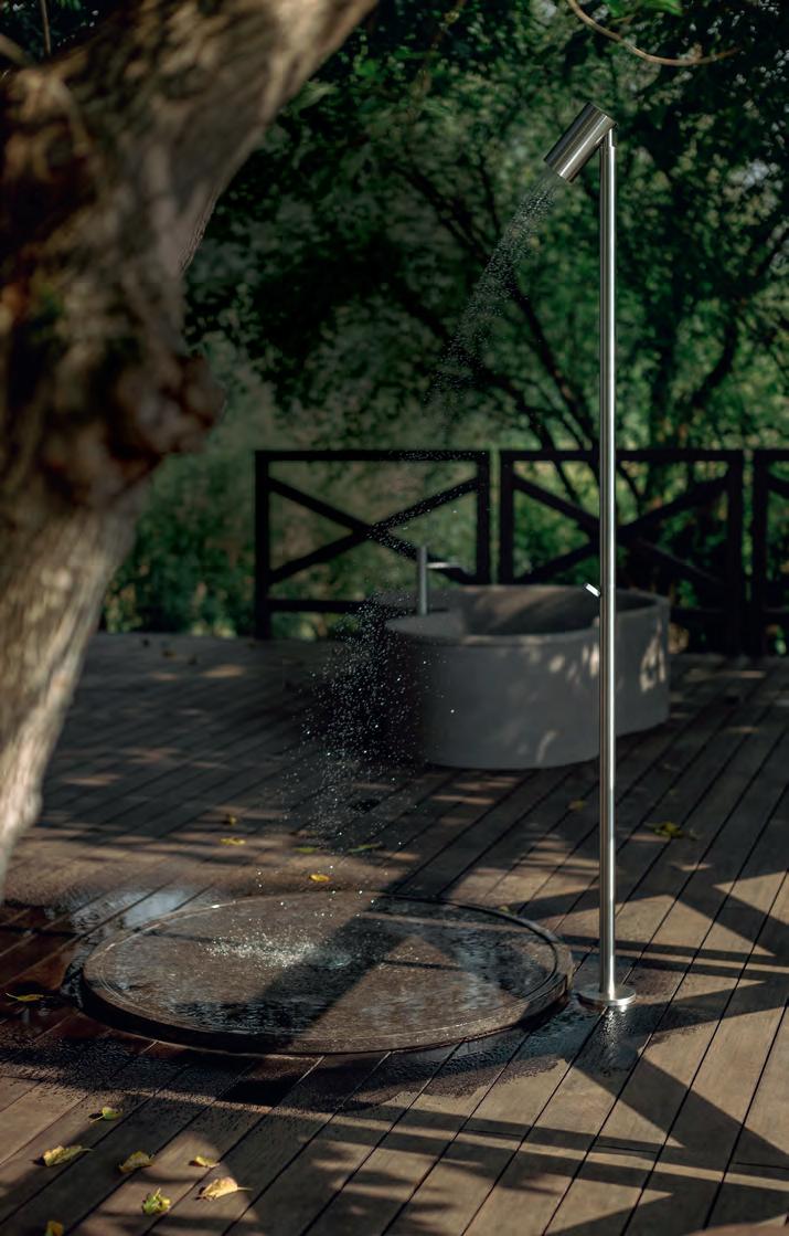 «Square» ist eine freistehende Bodendusche für den Aussenbereich, gefertigt aus poliertem oder satiniertem rostfreiem Edelstahl. Per Einhebelmischer und verstellbarer Handbrause lassen sich Wassertemperatur und -intensität einfach einstellen. Klare Linien und präzise Geometrie geben ihr optisch eine moderne Note. www.agape.it