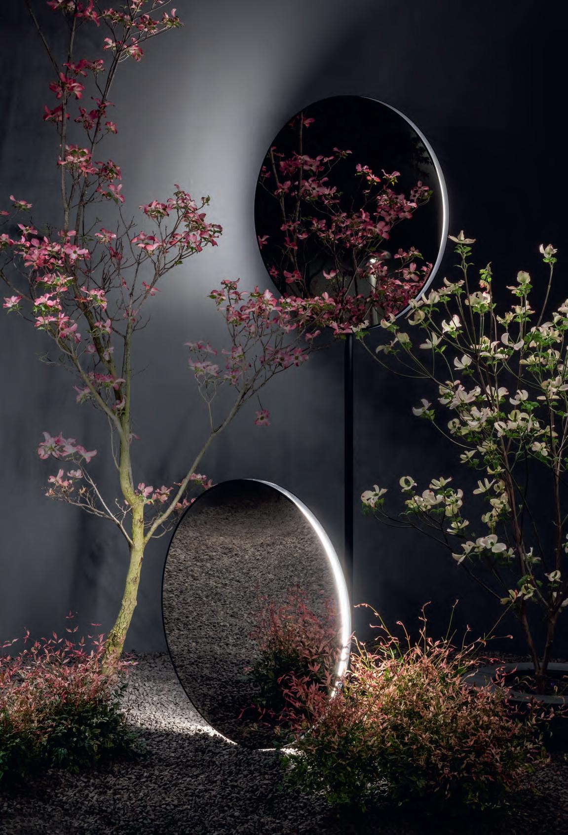 Szenografische Landschaften und spielerische Reflexionen erzeugen ein intimes Ambiente: Die Leuchte «SeleS» besteht aus zwei verspiegelten Scheiben, zwischen denen sich rundum ein zurückversetztes, homogenes Licht befindet. www.artemide.de