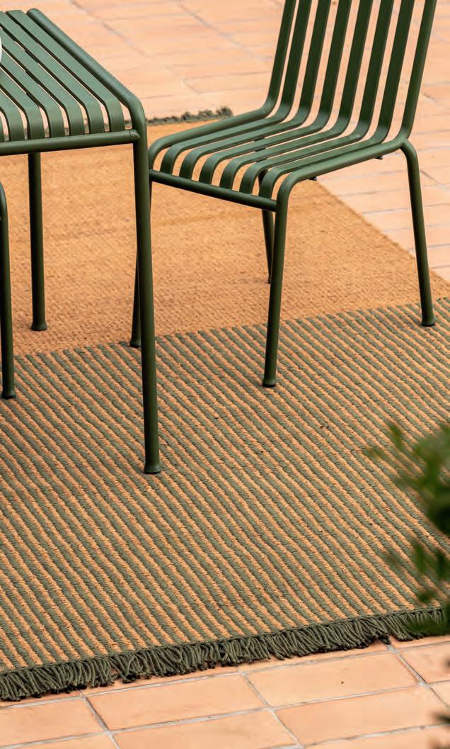 Mit nachhaltigen Fasern geht es gleich weiter: Die neue Teppichkollektion «Garden» von Nanimarquina besteht aus Kokosfasern gemischt mit recyceltem Pet. Ein widerstandsfähiges Material, das Natürlichkeit und Funktionalität vereint. Die Designs verströmen Wärme und Charakter. www.nanimarquina.com 2 4