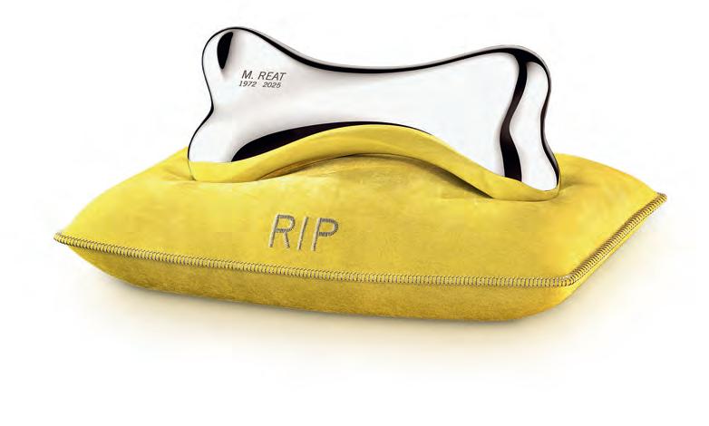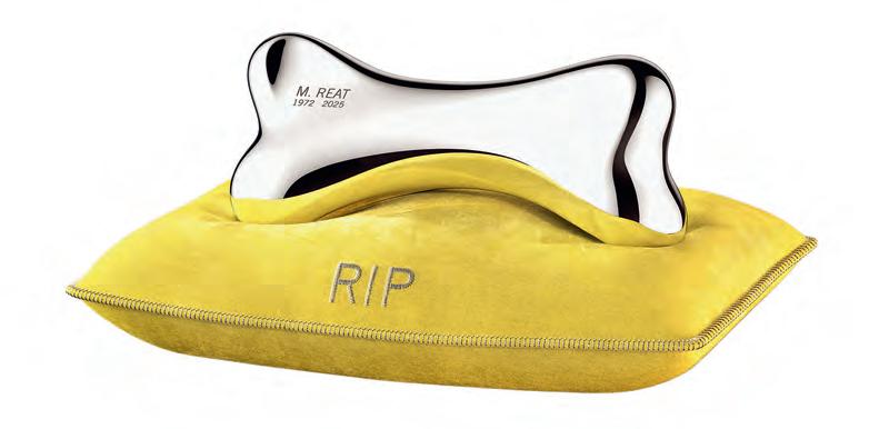 Selbst dem Unabwendbaren mit einem Lächeln zu begeg nen, das gelingt mit Philippe Starcks Beitrag zur Kollektion «The Last Pot», die von zehn internationalen Künst lern auf Einladung von Alberto Alessi entworfen wurde. Wie der Name impliziert, handelt es sich um eine Serie von Urnen – allerdings der etwas anderen Art. So haben Starck und Justice das Gefäss als Rückkehr zum eigenen Rückgrat der Existenz entworfen und lassen mit «Bone to Bone» Poesie, Logik und eben Humor aufeinandertreffen. Ein zeit loses Objekt, in dem die Essenz der Dinge gefunden wird. www.alessi.com, www.starck.com