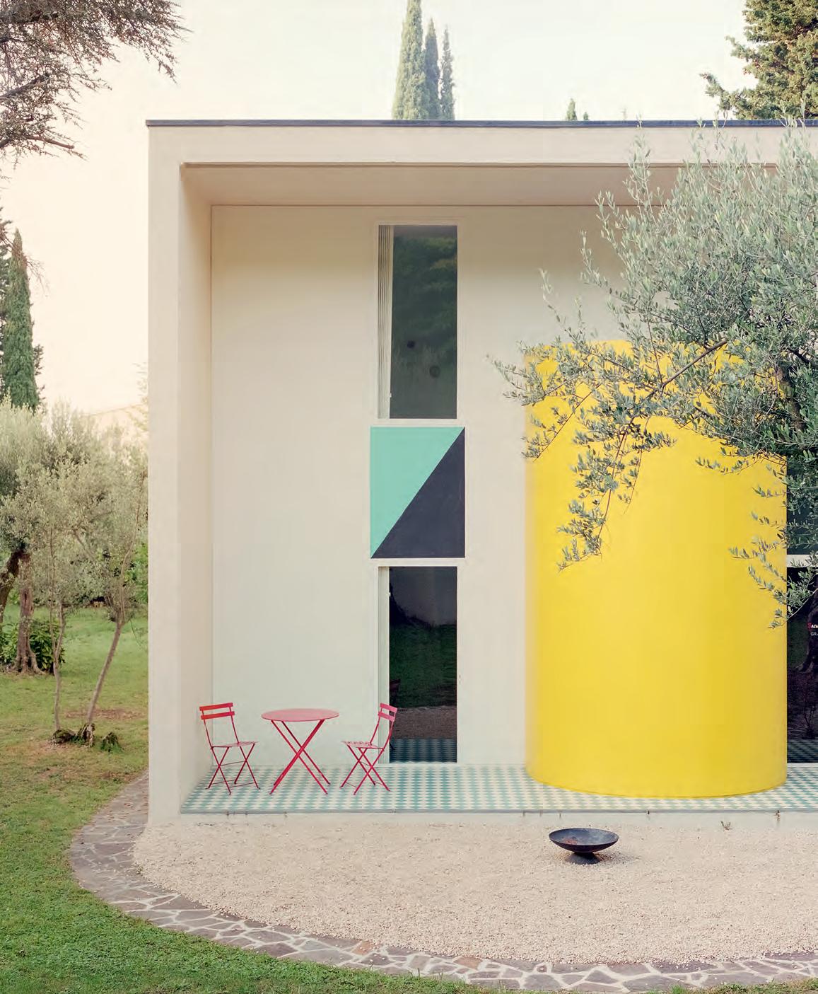 Mitten in einem Olivenhain oberhalb des Gardasees stehen drei weisse Kuben mit leuchtenden Farbakzenten, 1972 gebaut von den Architekten Salvati und Tresoldi. Die skulpturale Architektursprache und der interdisziplinäre Einbezug zeitgenössischer Grafik definieren die aussergewöhnlichen Bauten.
