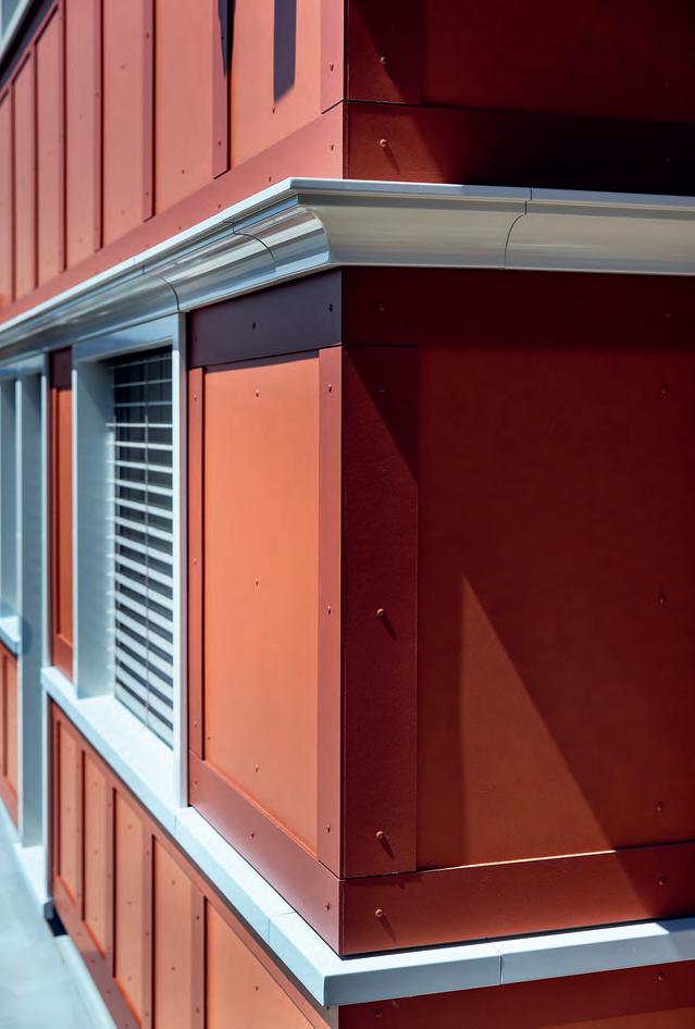 72 Maskenbildner. Schutz, Langlebigkeit und Ästhetik sind wichtige Kriterien bei der Auswahl der Materialien für die Fassade.